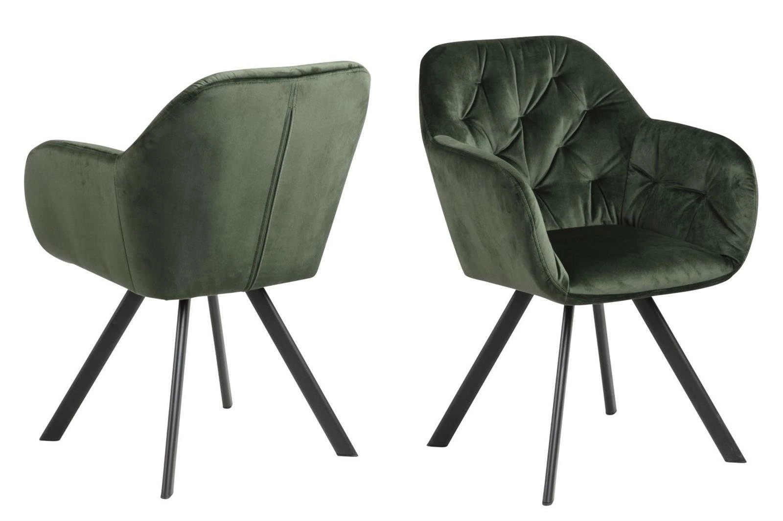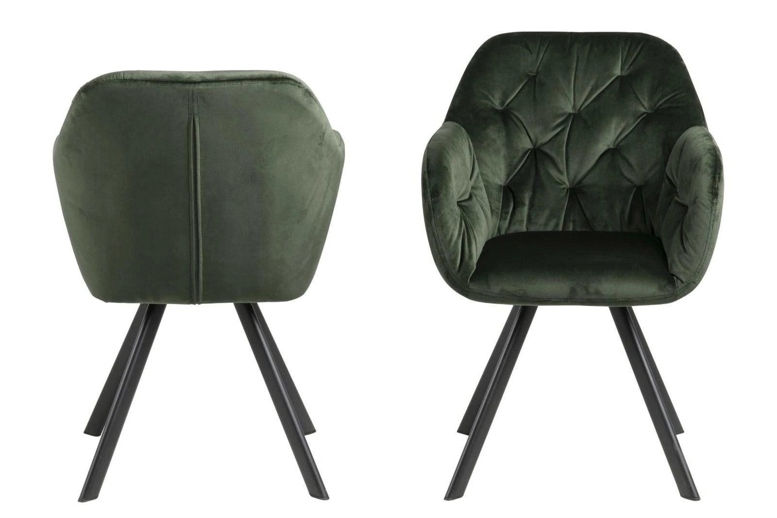 Idealne krzesła powinny zapewniać komfort, zaspokajać gusta, a także dbać o odpowiednią postawę. Wyjątkowe krzesło tapicerowane Lola łączy w sobie te cechy, które zmieniają je w model idealny. Jego podstawę stanowią lekkie w formie, jednak solidne metalowe nogi malowane proszkowo na czarno, które doskonale komponują się z miękką welwetową tkaniną VIC fabric forest green 68AC. Krzesło posiada podłokietniki, które z oparciem i siedziskiem tworzą spójną całość. Na wewnętrznej stronie krzesła znajduje się pikowanie, które dodaje mu stylu.