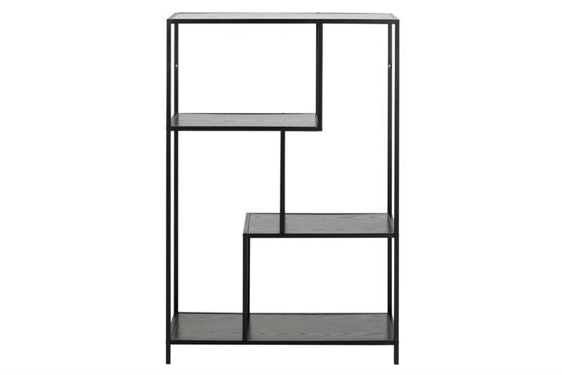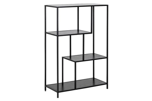Regał Seaford III idealnie wkomponuje się w minimalistyczne oraz loftowe wnętrza. Półki wykonane zostały z płyty MDF laminowanej jesionem w kolorze czarnym doskonale łączą sie z metalową ramą malowaną proszkowo na kolor czarny. Doskonale sprawdzą się w restauracji, hotelu czy salonie.