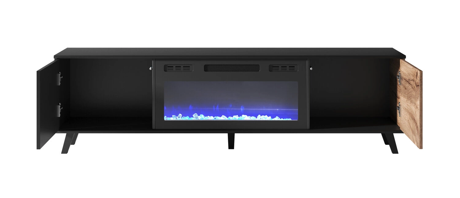 Uzyskaj idealną konsolę multimedialną do swojej przestrzeni życiowej dzięki tej stylowej szafce RTV od Intesi. 180-centymetrowa szafka w kolorze dąb wotan i czarnym posiada wbudowany kominek, fornirowaną konstrukcję MDF i okleinowaną płytę meblową.