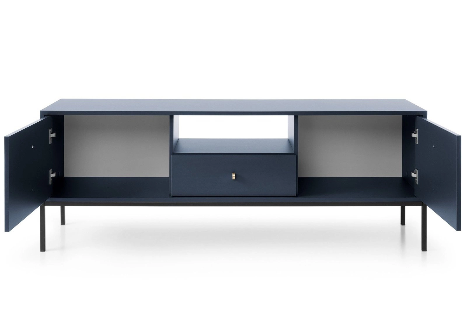 Minimalistyczna szafka RTV na wysokich nogach to mebel dla bardzo wymagających użytkowników. Szafka o gładkich frontach i klasycznym kształcie pozwoli na aranżacje nawet najbardziej wymagającego wnętrza. Uchwyty komody w kształcie pastylki, zrobione zostały z aluminium. Podstawą komody są wysokie nóżki, które ułatwiają wjechanie pod komodę robotom sprzątającym. Pakowna oraz elegancka szafka to rozwiązanie nie tylko do wnętrz nowoczesnych. Komoda pięknie prezentować się będzie również we wnętrzu boho lub nawet eklektycznym. Wymiary opakowania: 150x28x6cm i 160x43x9cm, Waga: 4 i 28kg