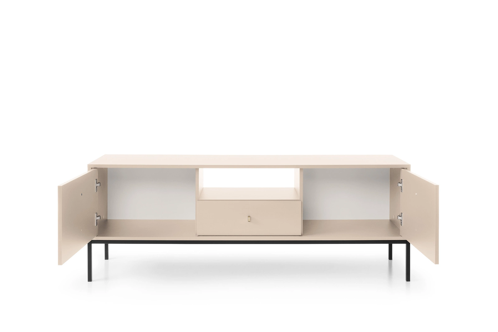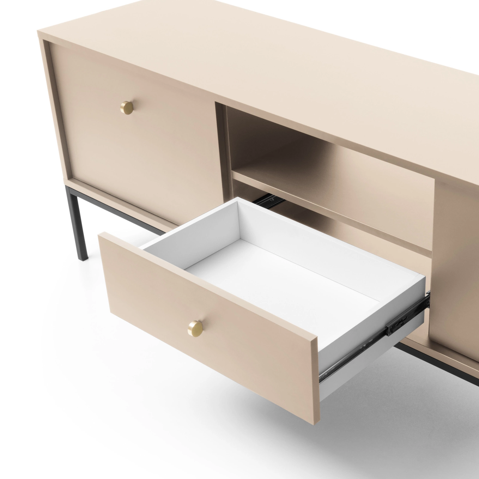 Dzięki swojemu prostemu, ale klasycznemu designowi, meble Evora doskonale wpasują się w każde wnętrze, dodając mu przy tym niepowtarzalnego charakteru. Gładki front szafek z płyty MDF oraz uchwyty w kształcie pastylki wykonane zostały z trwałego aluminium, co gwarantuje długotrwałą użytkowanie. Wysokie nóżki, ułatwiają wjechanie pod nią robota sprzątającego, co z pewnością docenią osoby, które cenią sobie wygodę i praktyczność.