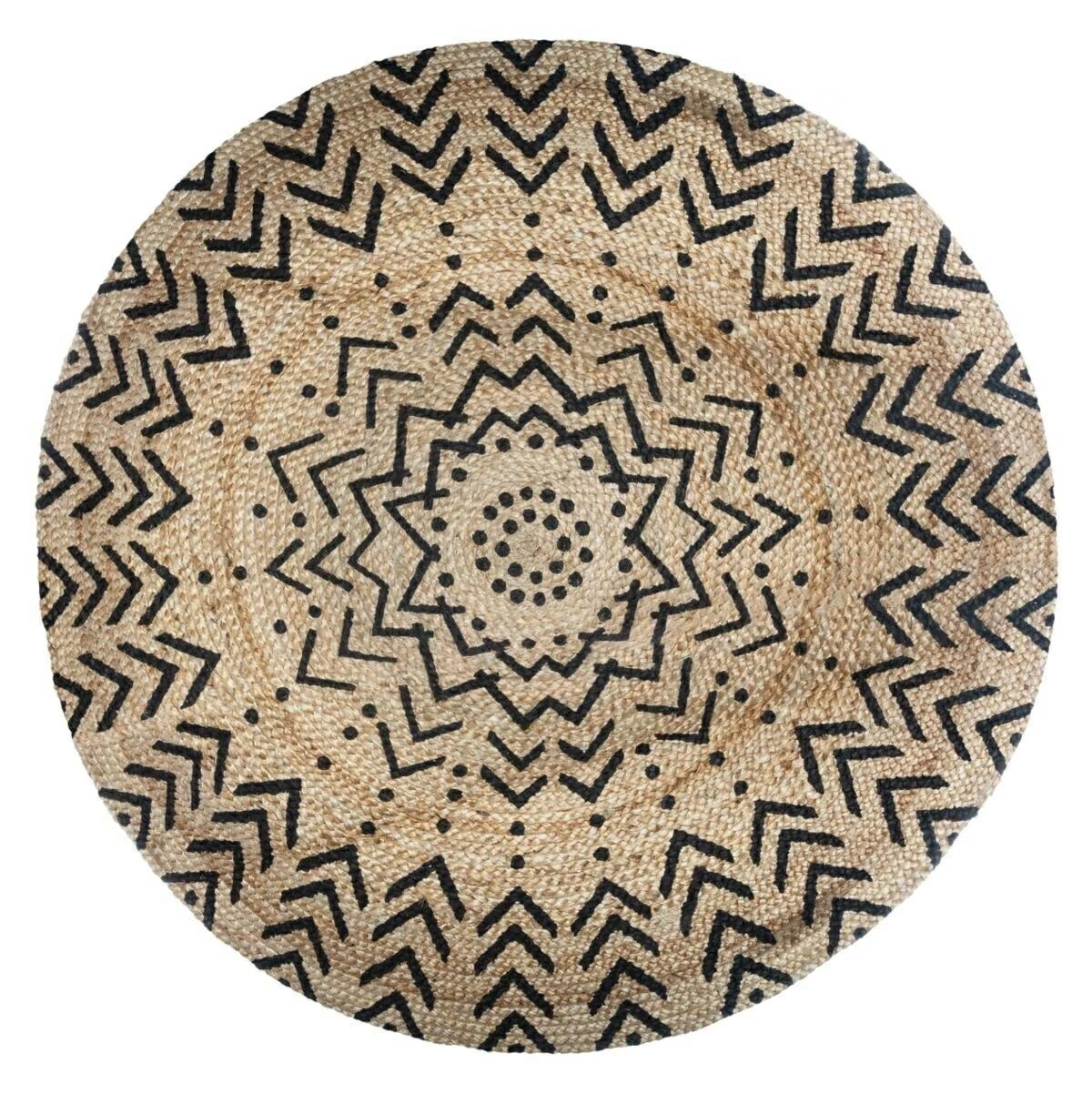 - Naturalny, pleciony, okrągły dywan o średnicy 120 cm.