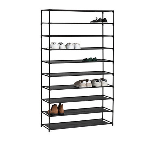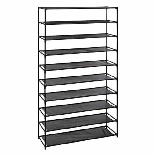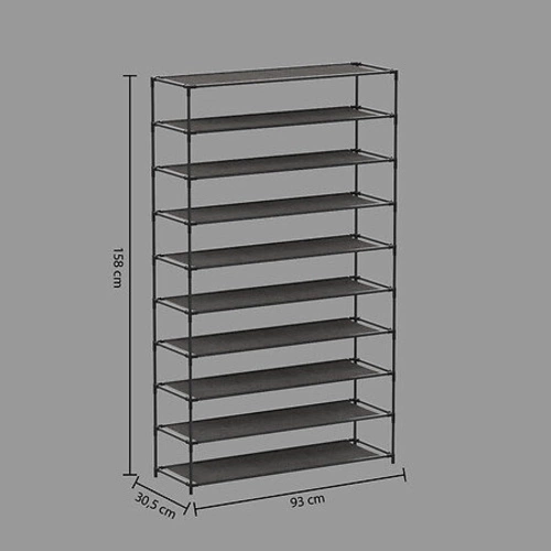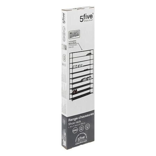 Stojak na buty 10-poziomowy czarny marki 5five simply smart to nowoczesny, wysoki regał na buty, idealny do przedpokoju lub garderoby. Wykonany z trwałego metalu wykończonego w półmacie, oferuje aż 10 poziomów do przechowywania obuwia. Dzięki szerokości 93 cm i wysokości 158 cm pomieści imponującą kolekcję butów, jednocześnie zajmując niewiele miejsca na podłodze.