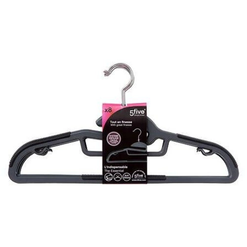 Zestaw 8 szarych wieszaków antypoślizgowych marki 5five simply smart to praktyczne i stylowe rozwiązanie do każdej garderoby lub szafy. Każdy wieszak wykonano z wytrzymałego metalu, pokrytego powłoką silikonową, która skutecznie zapobiega zsuwaniu się ubrań, a szerokość 41 cm umożliwia przechowywanie zarówno koszul, jak i spodni czy sukienek. Zestaw idealnie sprawdzi się w codziennym użytkowaniu, pozwalając zachować porządek i chronić odzież przed zagnieceniami.
