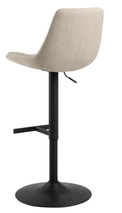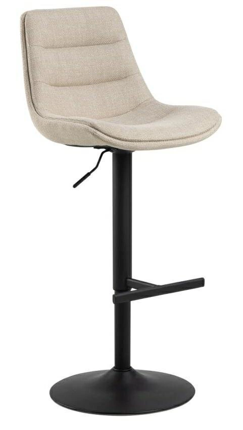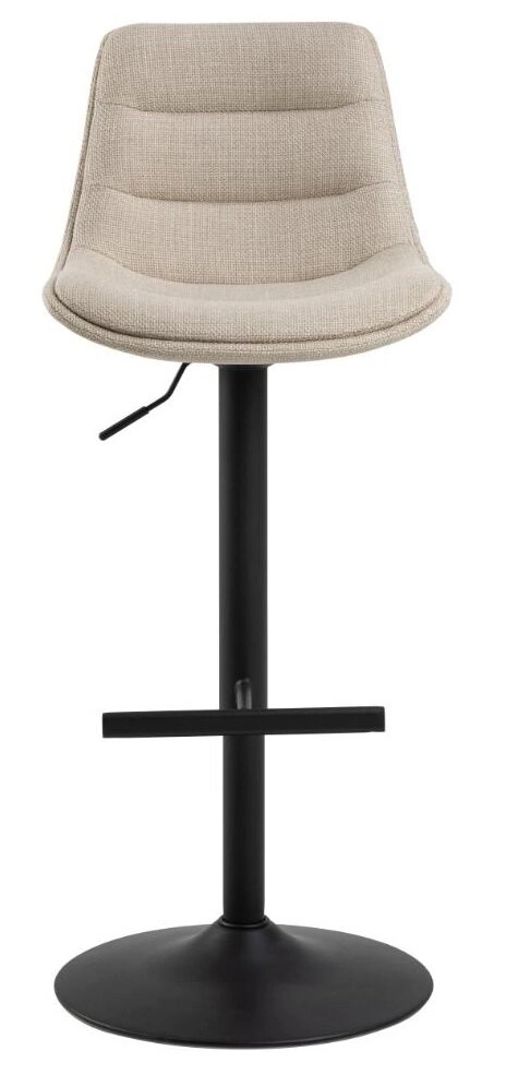 Hoker Adisa w kolorze beżowym z tkaniną Basel 24 to elegancki i nowoczesny dodatek do wnętrza, idealny do stosowania w kuchni, jadalni, czy nawet w stylowym barze. Konstrukcja jednej czarnej nogi z podstawą zapewnia stabilność i wygodę użytkowania. Metalowy podnóżek dodatkowo ułatwia komfortowe siedzenie, umożliwiając podpieranie stóp.