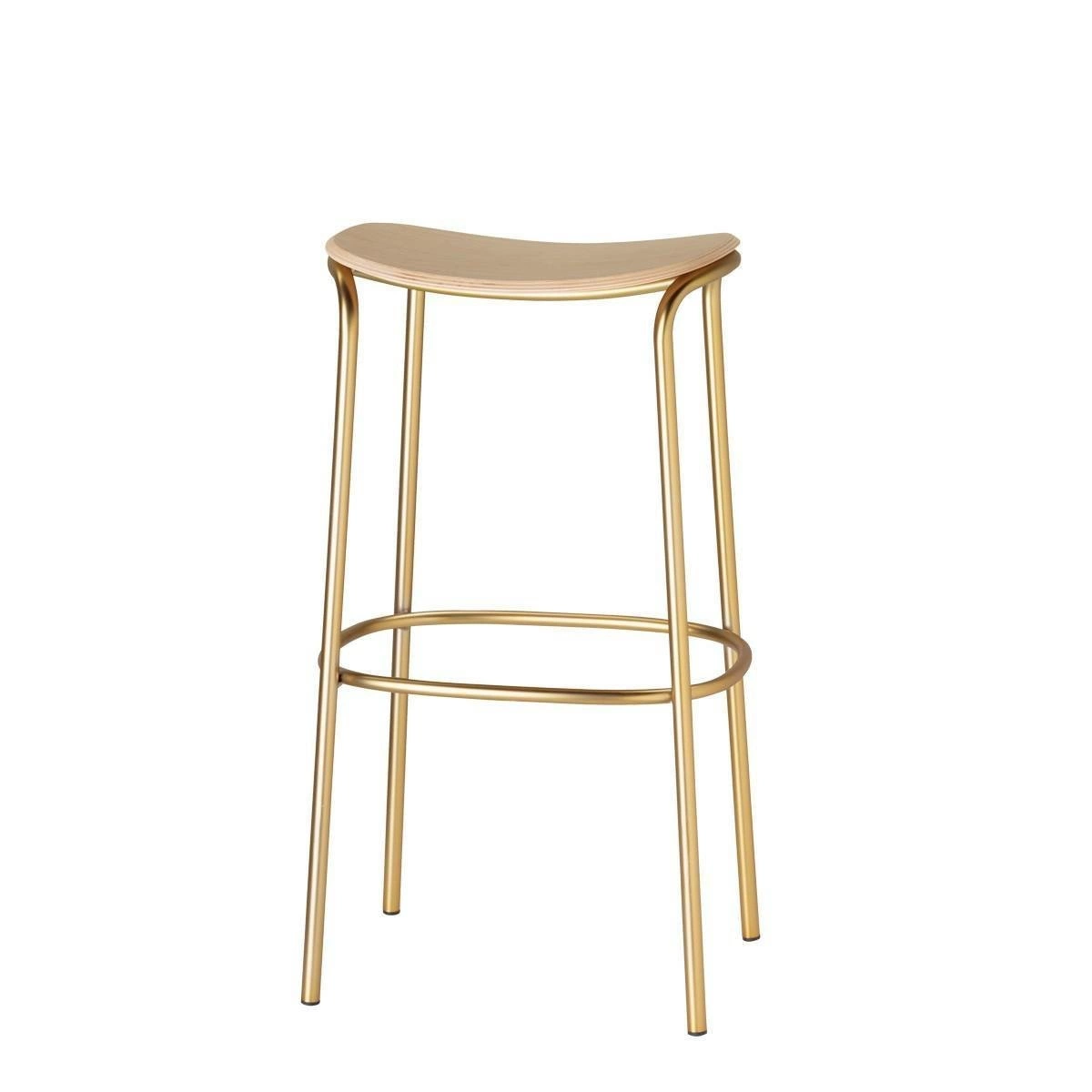 Hoker bez oparcia Trick wood 75 cm nowoczesny drewniany do kuchni na złotych nogach SCAB Design
