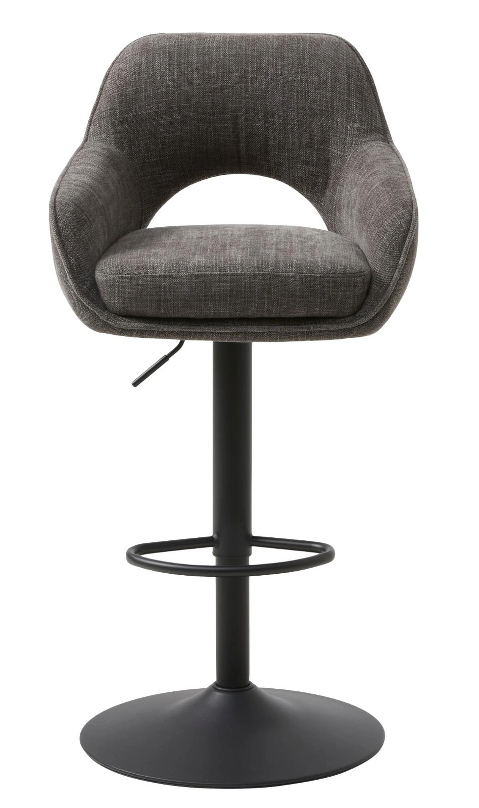 Ciemnoszare, tapicerowane siedzisko hokera Cowley to uniwersalny wybór do nowoczesnych wnętrz. Ten odcień dobrze maskuje drobne zabrudzenia, a gładka tkanina sprawia, że hoker prezentuje się elegancko zarówno w domowej kuchni, jak i przy wyspie w salonie. Połączenie szarego siedziska z czarną, metalową podstawą tworzy spójny, współczesny wygląd, który łatwo zestawisz z czarnymi dodatkami, drewnianym blatem czy białą zabudową kuchenną.