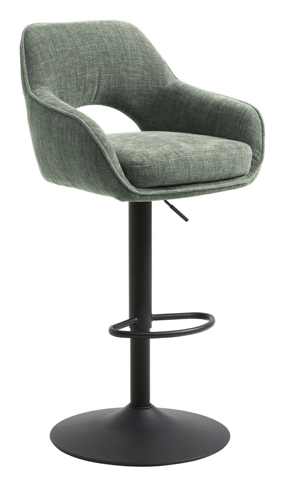 Hoker Cowley marki UNIQUE to nowoczesne krzesło barowe do kuchni i jadalni, łączące wygodne, zielone siedzisko z miękkim oparciem oraz stabilną czarną podstawą na jednej nodze. Regulowana wysokość w zakresie od ok. 95,5 do 110,5 cm pozwala idealnie dopasować hoker do wyspy kuchennej, baru śniadaniowego czy wysokiego blatu. Zintegrowane podłokietniki i praktyczny podnóżek zapewniają komfort nawet przy dłuższym siedzeniu.