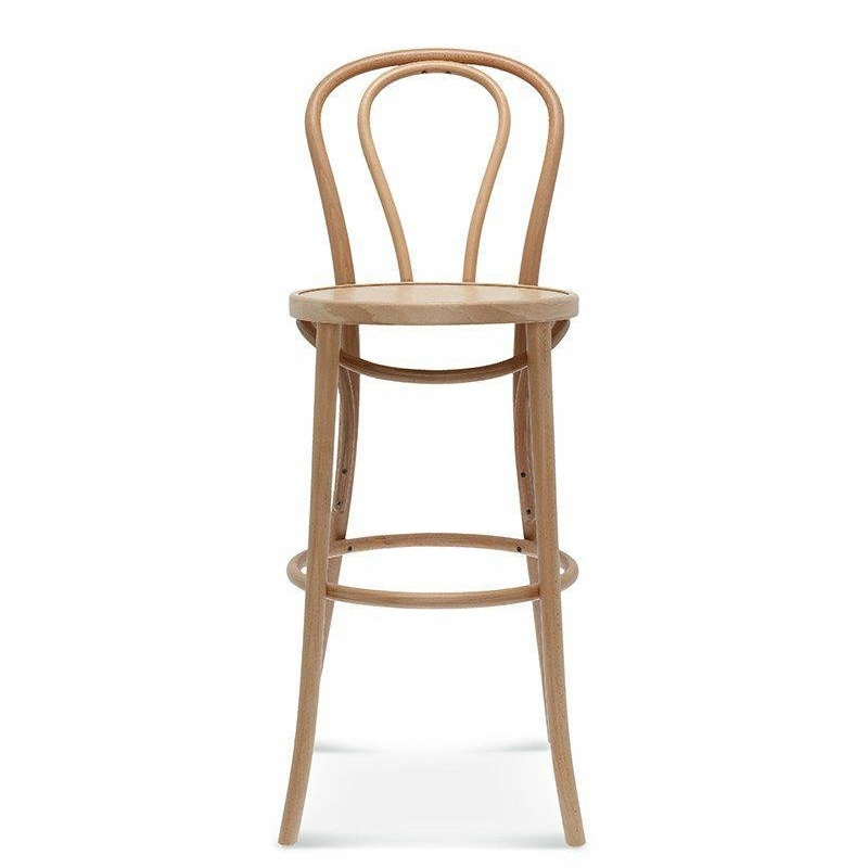Krzesło barowe BST-18 swoim projektem nawiązuje do ikonicznego krzesła nr 18, zaprojektowanego w 1876 roku, które od tamtego czasu podbija serca użytkowników. Charakterystycznym elementem, który pozwala znaleźć podobieństwo jest charakterystyczne gięcie oparcia oraz okrągłe siedzisko. Styl vintage tego projektu spotkał się z nowoczesnymi potrzebami i w połączeniu powstało wysokie krzesło o klasycznym wyglądzie. Niezwykły urok nadaje mu wykonanie z czystego drewna i gładkie kształty, krzesło swoim wyglądem przywołuje myśl o naturze i harmonijnej budowie. Dodatkowy wspornik stabilizuje konstrukcję i zapewnia miejsce do położenia nóg.
