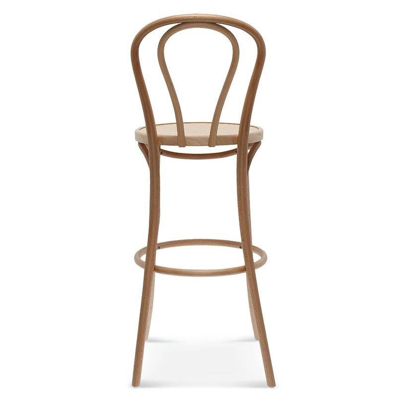 Krzesło barowe BST-18 swoim projektem nawiązuje do ikonicznego krzesła nr 18, zaprojektowanego w 1876 roku, które od tamtego czasu podbija serca użytkowników. Charakterystycznym elementem, który pozwala znaleźć podobieństwo jest charakterystyczne gięcie oparcia oraz okrągłe siedzisko. Styl vintage tego projektu spotkał się z nowoczesnymi potrzebami i w połączeniu powstało wysokie krzesło o klasycznym wyglądzie. Niezwykły urok nadaje mu wykonanie z czystego drewna i gładkie kształty, krzesło swoim wyglądem przywołuje myśl o naturze i harmonijnej budowie. Dodatkowy wspornik stabilizuje konstrukcję i zapewnia miejsce do położenia nóg.