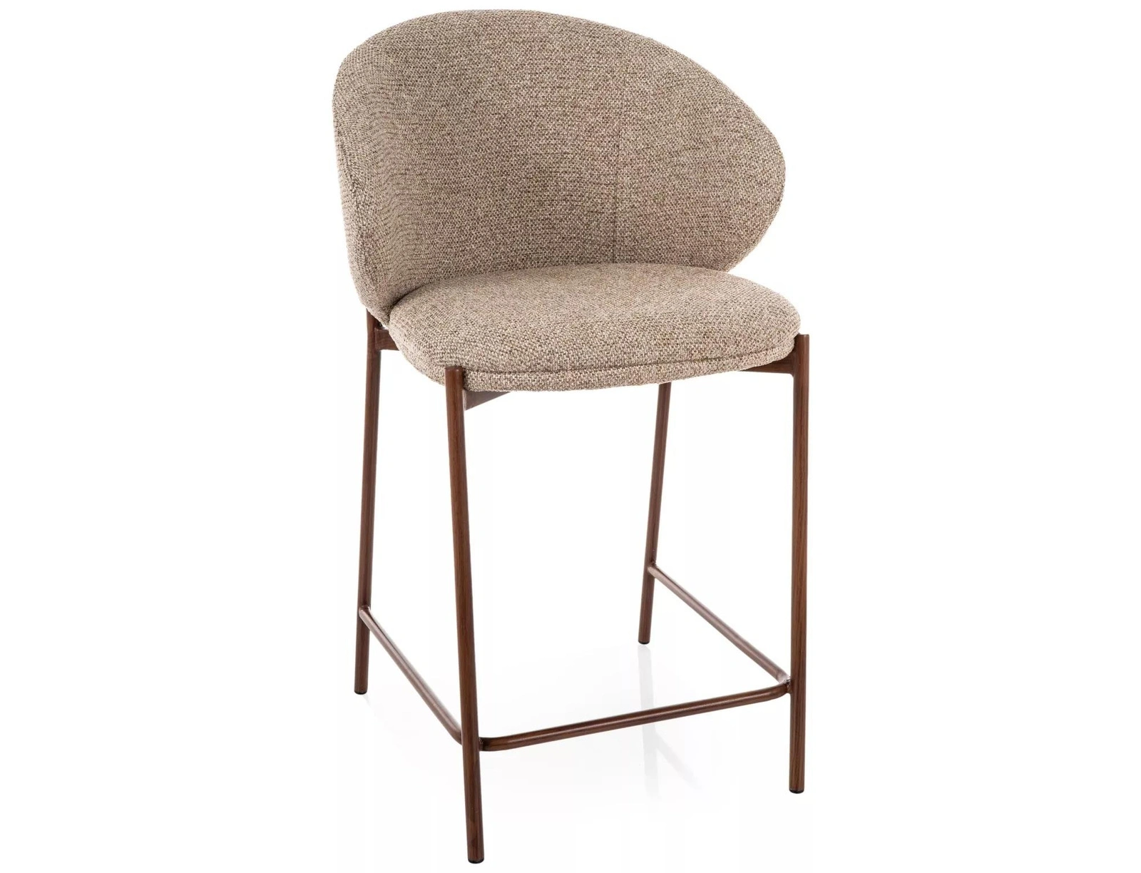 Hoker Elsme marki Intesi to tapicerowane krzesło barowe z oparciem, stworzone z myślą o komfortowym siedzeniu przy wyspie kuchennej. Beżowe siedzisko na czterech stabilnych nogach w kolorze ciemnego orzecha, z praktycznym podnóżkiem, łączy nowoczesny design z wygodą na co dzień.