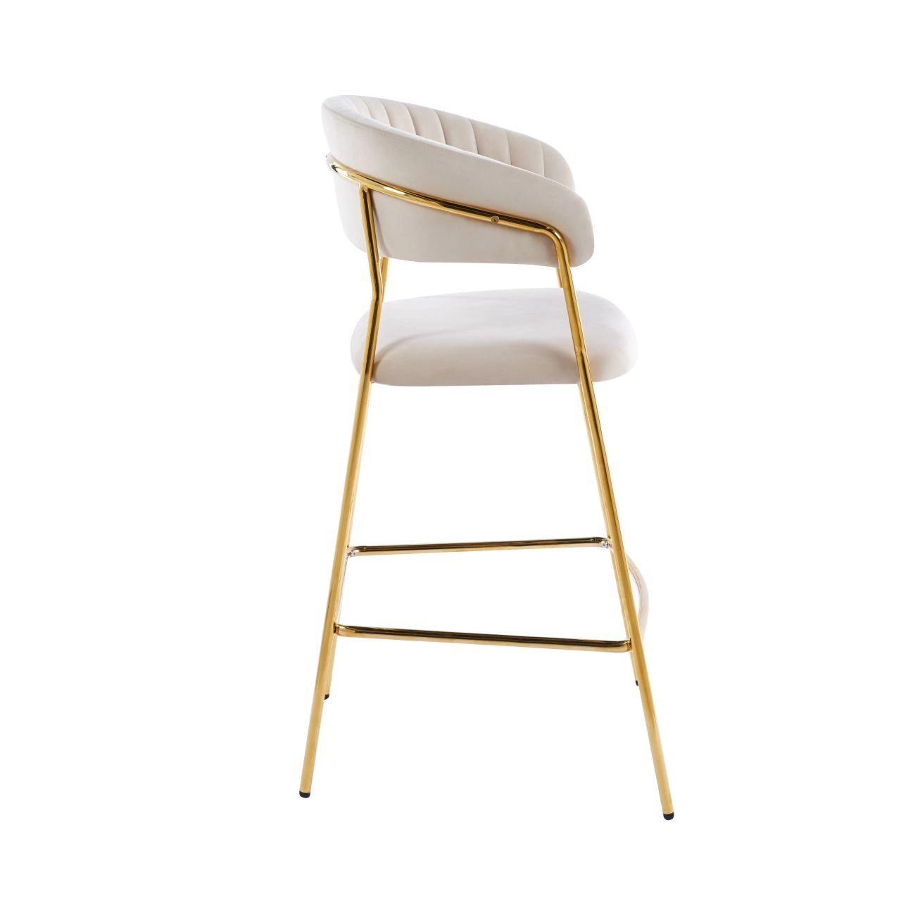 Hoker Glamour welurowy beżowy na złotych nogach z podłokietnikami do kuchni 65 cm Intesi