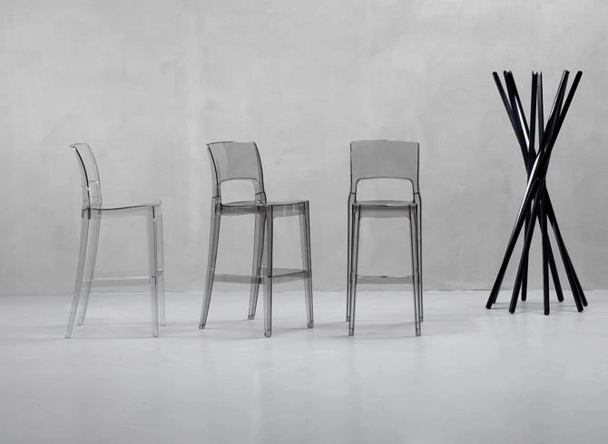 Hoker Isy transparentny z oparciem marki SCAB Design to wyjątkowe połączenie nowoczesnego stylu glamour z funkcjonalnością, której oczekujesz w kuchni, przy wyspie czy w eleganckiej jadalni. Wykonany z wysokiej jakości tworzywa sztucznego, o błyszczącym wykończeniu i imponującej wysokości siedziska 74 cm, ten krzesło barowe przyciąga wzrok transparentną formą i ergonomicznym oparciem zapewniającym wygodę nawet podczas dłuższego użytkowania.