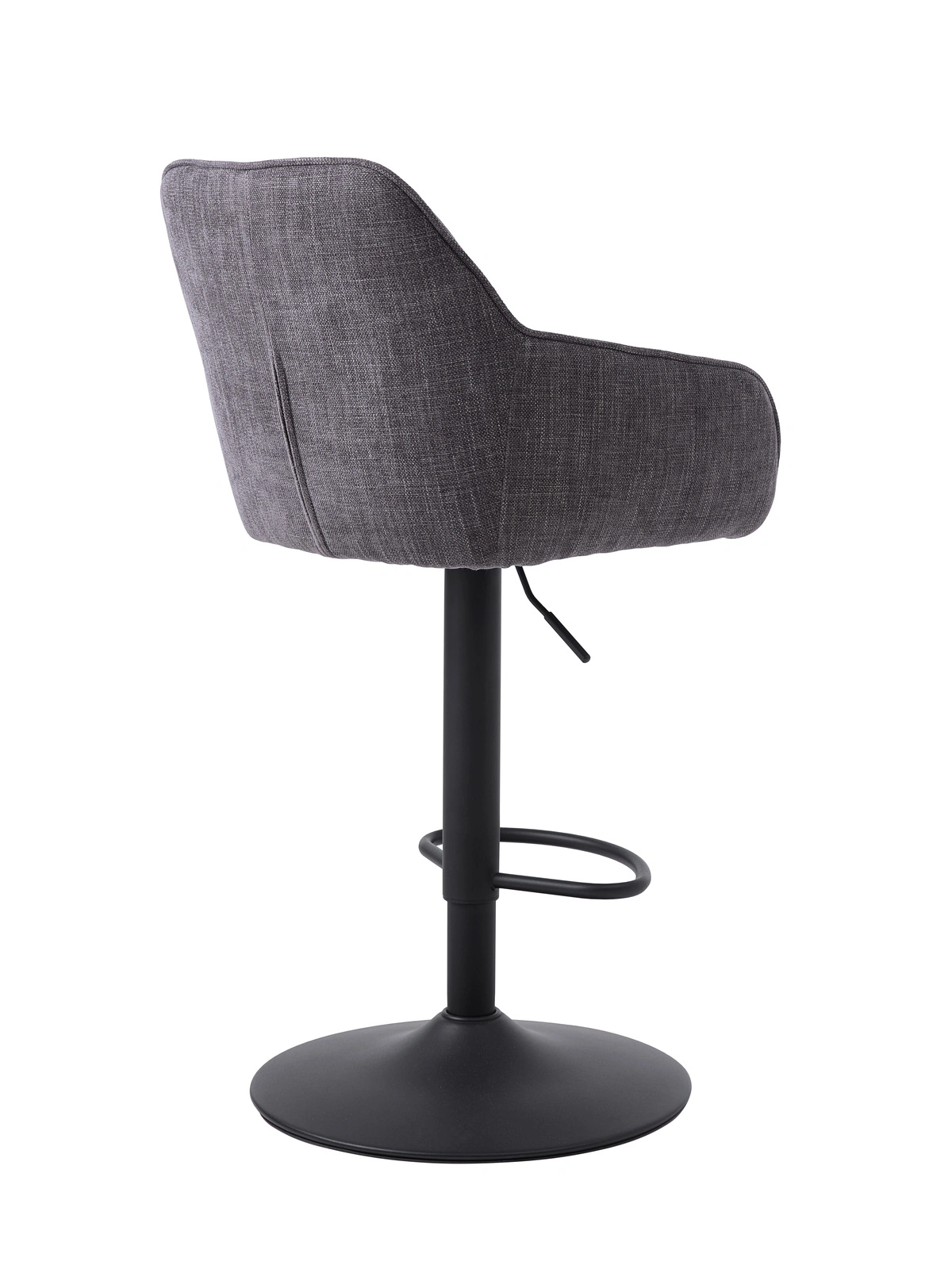 Hoker Lova marki UNIQUE to nowoczesny, obrotowy hoker z podłokietnikami, który doskonale sprawdzi się przy wyspie kuchennej, w jadalni czy przy domowym barku. Siedzisko wykończone przyjemną w dotyku grafitową tkaniną gwarantuje komfort nawet podczas dłuższych rozmów, a czarna, matowa podstawa ze stali podkreśla wyrazisty, modernistyczny charakter mebla. Hoker oferuje regulację wysokości od 95,5 do 110 cm, co pozwala łatwo dopasować go zarówno do niskich, jak i wysokich blatów kuchennych.