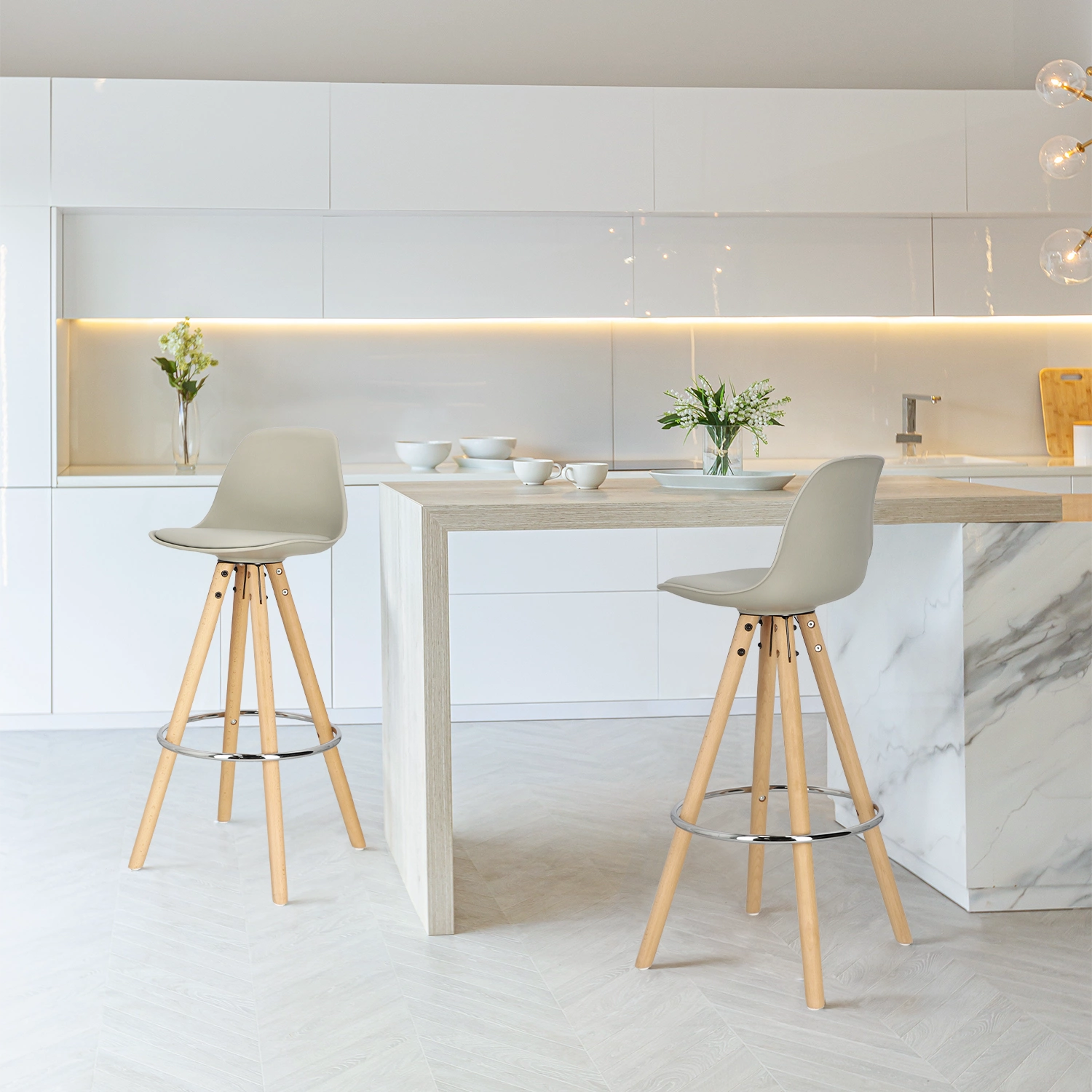 Siedzisko hokera Nord wykonane jest z wytrzymałego polipropylenu, który jest nie tylko łatwy do czyszczenia, ale również zapewnia wygodę podczas długotrwałego użytkowania. Dodatkowo, dla jeszcze większego komfortu, siedzisko zostało wyposażone w poduszkę z ekoskóry, która przyczepiona jest na stałe i sprawia, że możesz cieszyć się wygodnym siedzeniem przez długi czas. Podstawa hokera składa się z solidnych, drewnianych nóg wykonanych z litego drewna bukowego, które otacza metalowa, chromowana obręcz. Ta kombinacja materiałów sprawia, że hoker Nord jest nie tylko stabilny, ale także estetyczny i trwały. Dzięki swojemu uniwersalnemu designowi, hoker Nord doskonale wpasuje się w różne pomieszczenia.