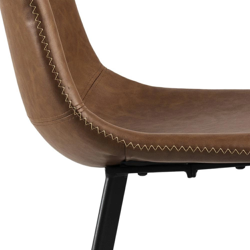 Stołek barowy Oregon to wygodny i stylowy dodatek do wnętrz w stylu industrialnym oraz retro. Podstawa wykonana z metalu malowanego proszkowo posiada ciekawe łączenie, służące za podnóżek. Siedzisko wypełnione pianką poliuretanową obito tkaniną PU retro leather look brandy 691B, dzięki czemu forma krzesła nabrała subtelnego charakteru retro. Charakterystyczną cechą stołka barowego Oregon PU jest ścieg na brzegu siedziska oraz oparcia. Hoker sprawdzi się doskonale przy domowej wyspie kuchennej, ale również w przestrzeniach publicznych takich jak bary czy restauracje. To nowoczesny design inspirowany dozą klimatu z poprzedniego wieku.
