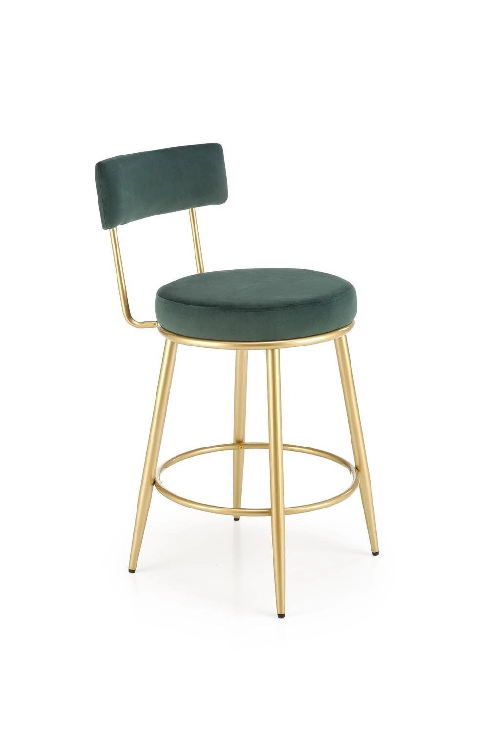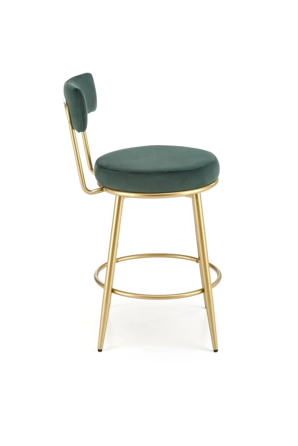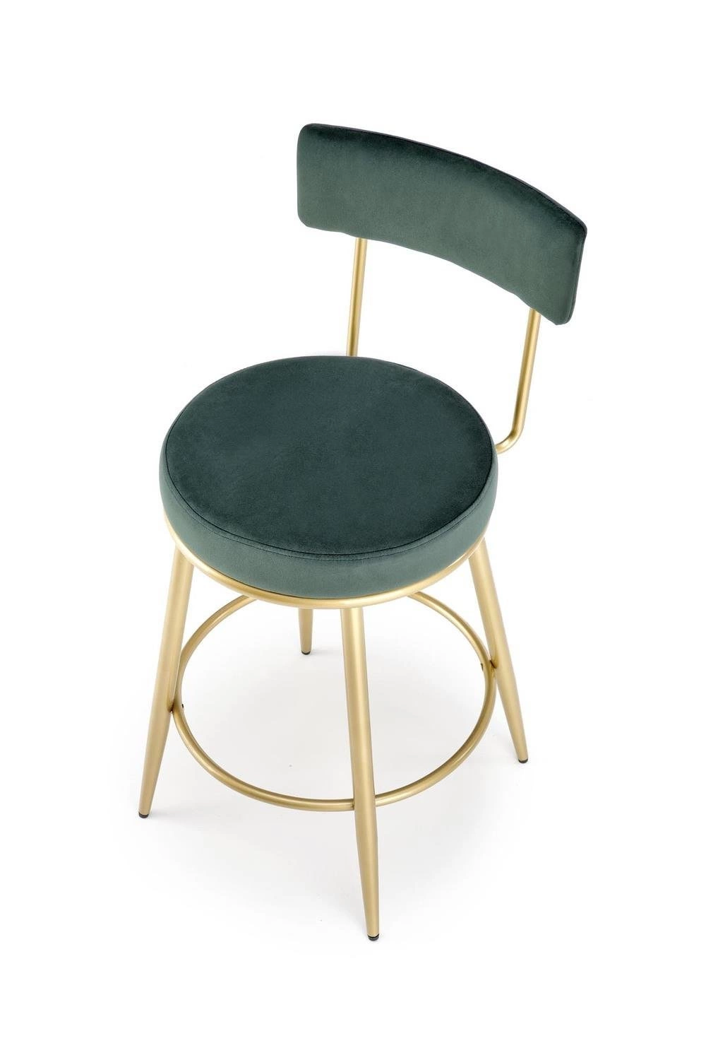 Hoker Pamela zielony/ złoty Hoker Pamela to połączenie nowoczesności z nutką glamour, które z pewnością doda elegancji i luksusowego charakteru do Twojej jadalni lub eleganckiej restauracji. Oferuje nie tylko wyjątkowy design, ale także doskonały komfort. Stylowy hoker Pamela z pewnością przyciągnie uwagę wszystkich gości. Zaprojektowany z dbałością o szczegóły, hoker Pamela został wyposażony w siedzisko o okrągłym kształcie, które zostało pokryte miękką, aksamitną tkaniną. Velvet to materiał, który dodaje meblom wyjątkowej elegancji i zachwyca swoją miękkością, zapewniając jednocześnie wygodę podczas długich spotkań przy wyspie kuchennej lub kolacji w ekskluzywnej restauracji. Natomiast podstawa hokera wykonana jest z wytrzymałej stali, która została starannie pomalowana proszkowo na efektowny złoty kolor. Ta wyrazista kontrastująca kombinacja kolorów nadaje hokerowi niepowtarzalnego charakteru i przyciąga wzrok, stanowiąc jednocześnie solidne i stabilne podparcie. Wygoda użytkowania to priorytetowe założenie tego modelu. Cztery solidne nogi zabezpieczone nakładkami zapewniają stabilność i chronią podłogę przed zarysowaniami, a podpórka na nogi dodatkowo podnosi komfort użytkowania. Wyprofilowane oparcie zapewnia odpowiednie wsparcie dla pleców, umożliwiając miłe spędzenie czasu w towarzystwie. Co warto wiedzieć przed zakupem Hoker Pamela łączy nowoczesność z glamour, dzięki czemu doskonale wpasuje się w elegancką jadalnię lub restaurację. Aksamitna tkanina nadaje meblowi wyjątkową elegancję i wygodę. Złota stalowa podstawa dodaje hokerowi niepowtarzalnego charakteru i stabilności. Oparcie oraz podpora na nogi zapewniają dodatkowy komfort podczas użytkowania. Solidne wykonanie i zabezpieczenia na nóżkach świadczą o dbałości o detale i funkcjonalność mebla.
