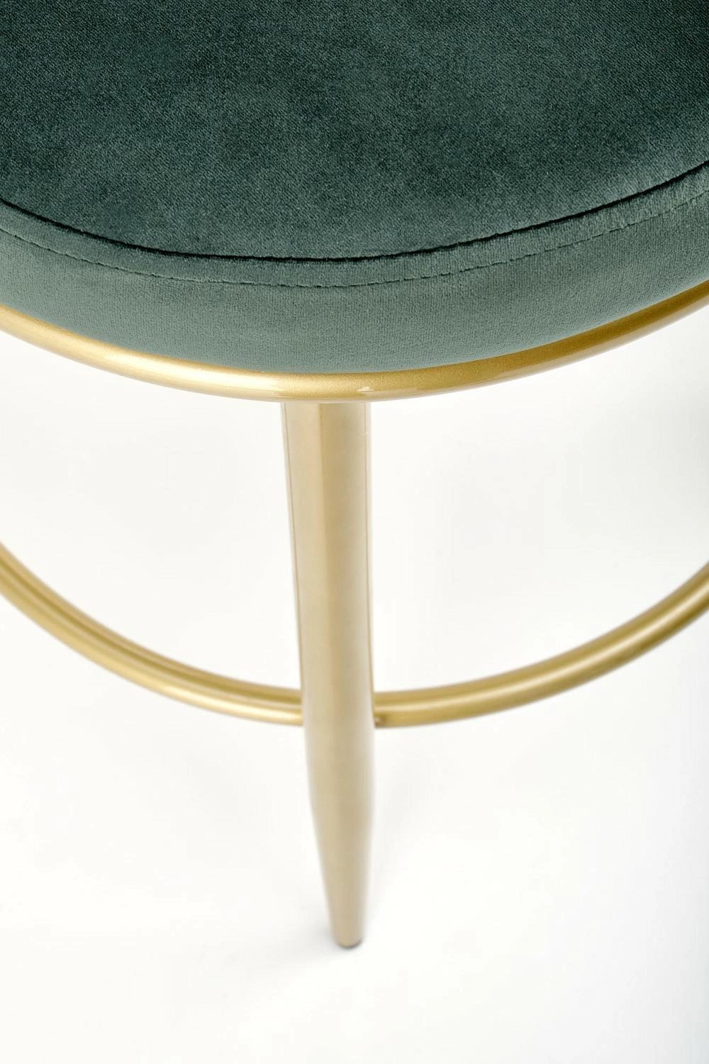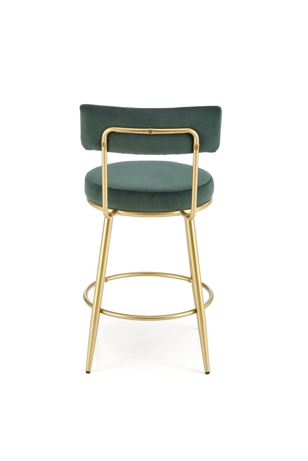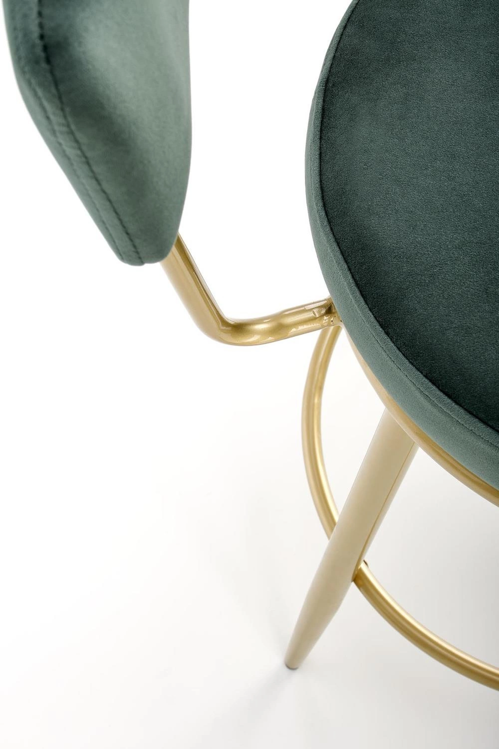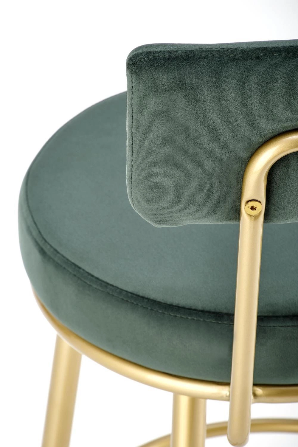 Hoker Pamela zielony/ złoty Hoker Pamela to połączenie nowoczesności z nutką glamour, które z pewnością doda elegancji i luksusowego charakteru do Twojej jadalni lub eleganckiej restauracji. Oferuje nie tylko wyjątkowy design, ale także doskonały komfort. Stylowy hoker Pamela z pewnością przyciągnie uwagę wszystkich gości. Zaprojektowany z dbałością o szczegóły, hoker Pamela został wyposażony w siedzisko o okrągłym kształcie, które zostało pokryte miękką, aksamitną tkaniną. Velvet to materiał, który dodaje meblom wyjątkowej elegancji i zachwyca swoją miękkością, zapewniając jednocześnie wygodę podczas długich spotkań przy wyspie kuchennej lub kolacji w ekskluzywnej restauracji. Natomiast podstawa hokera wykonana jest z wytrzymałej stali, która została starannie pomalowana proszkowo na efektowny złoty kolor. Ta wyrazista kontrastująca kombinacja kolorów nadaje hokerowi niepowtarzalnego charakteru i przyciąga wzrok, stanowiąc jednocześnie solidne i stabilne podparcie. Wygoda użytkowania to priorytetowe założenie tego modelu. Cztery solidne nogi zabezpieczone nakładkami zapewniają stabilność i chronią podłogę przed zarysowaniami, a podpórka na nogi dodatkowo podnosi komfort użytkowania. Wyprofilowane oparcie zapewnia odpowiednie wsparcie dla pleców, umożliwiając miłe spędzenie czasu w towarzystwie. Co warto wiedzieć przed zakupem Hoker Pamela łączy nowoczesność z glamour, dzięki czemu doskonale wpasuje się w elegancką jadalnię lub restaurację. Aksamitna tkanina nadaje meblowi wyjątkową elegancję i wygodę. Złota stalowa podstawa dodaje hokerowi niepowtarzalnego charakteru i stabilności. Oparcie oraz podpora na nogi zapewniają dodatkowy komfort podczas użytkowania. Solidne wykonanie i zabezpieczenia na nóżkach świadczą o dbałości o detale i funkcjonalność mebla.