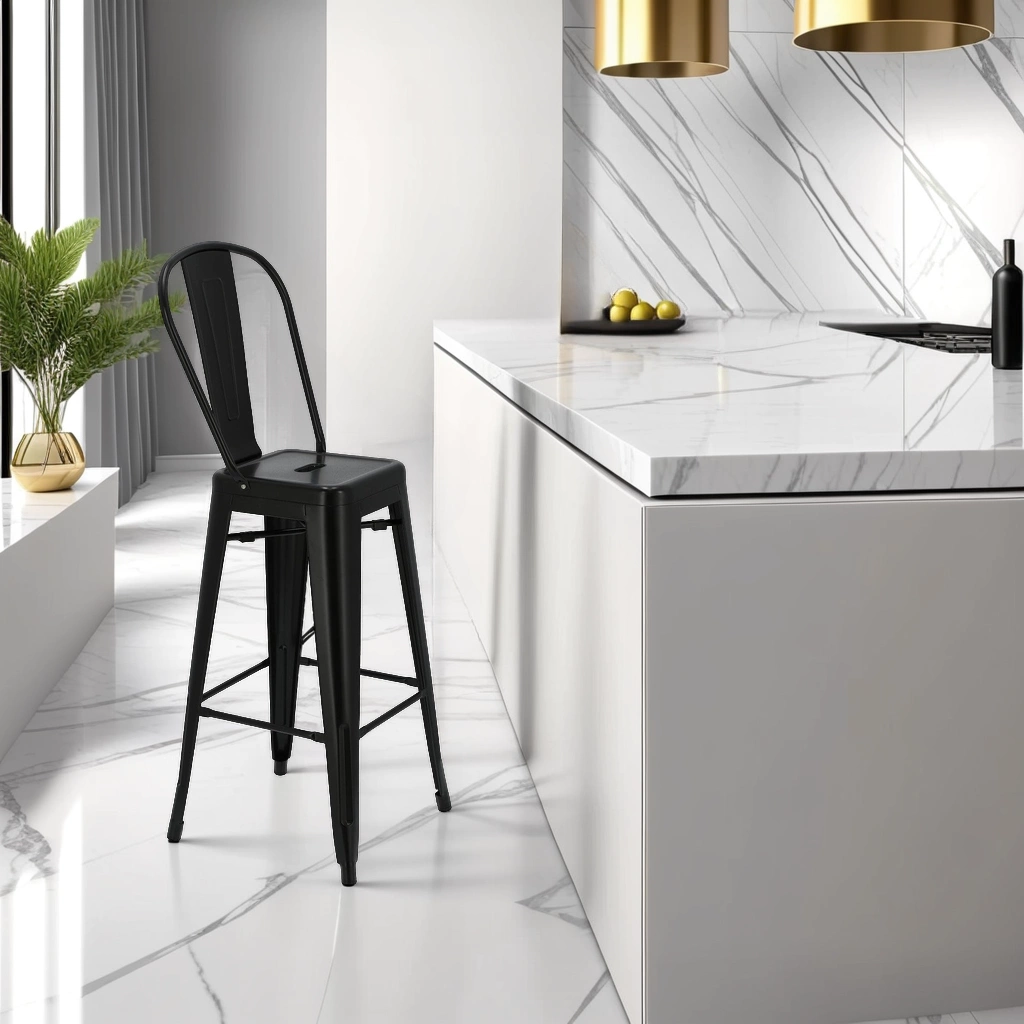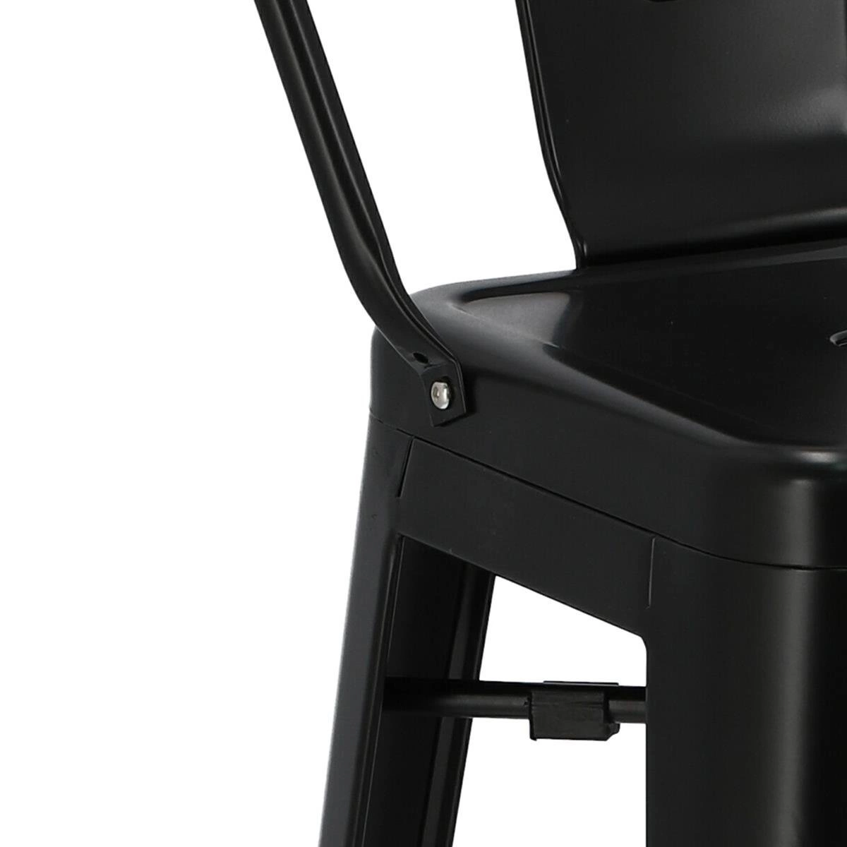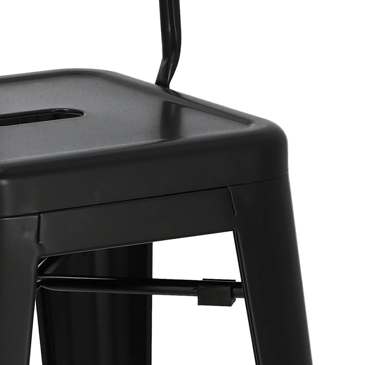 Wykonany z proszkowo malowanego metalu stołek barowy Paris Back to nowatorska propozycja dla wszystkich miłośników designu. Stalowy, ręcznie wykonany hoker o przemysłowej formie doda uroku Twojemu domowemu kącikowi relaksu. Stołek wykonany jest w całości z metalu lakierowanego na kolor czarny. Użycie metody proszkowej do pokrycia hokera sprawiło, że powierzchnia jest jednolita i gładka. Dodatkową zaletą hokera jest wysokie oparcie, które potęguję wygodę siedzenia, a także praktyczna podpórka na nogi. Zamontowane stopki w podstawie z tworzywa sztucznego chronią podłogę przed ewentualnym zarysowaniem. Dodatkową zaletą stołka jest to, że się sztapluje. Maksymalne obciążenie stołka: 120 kg