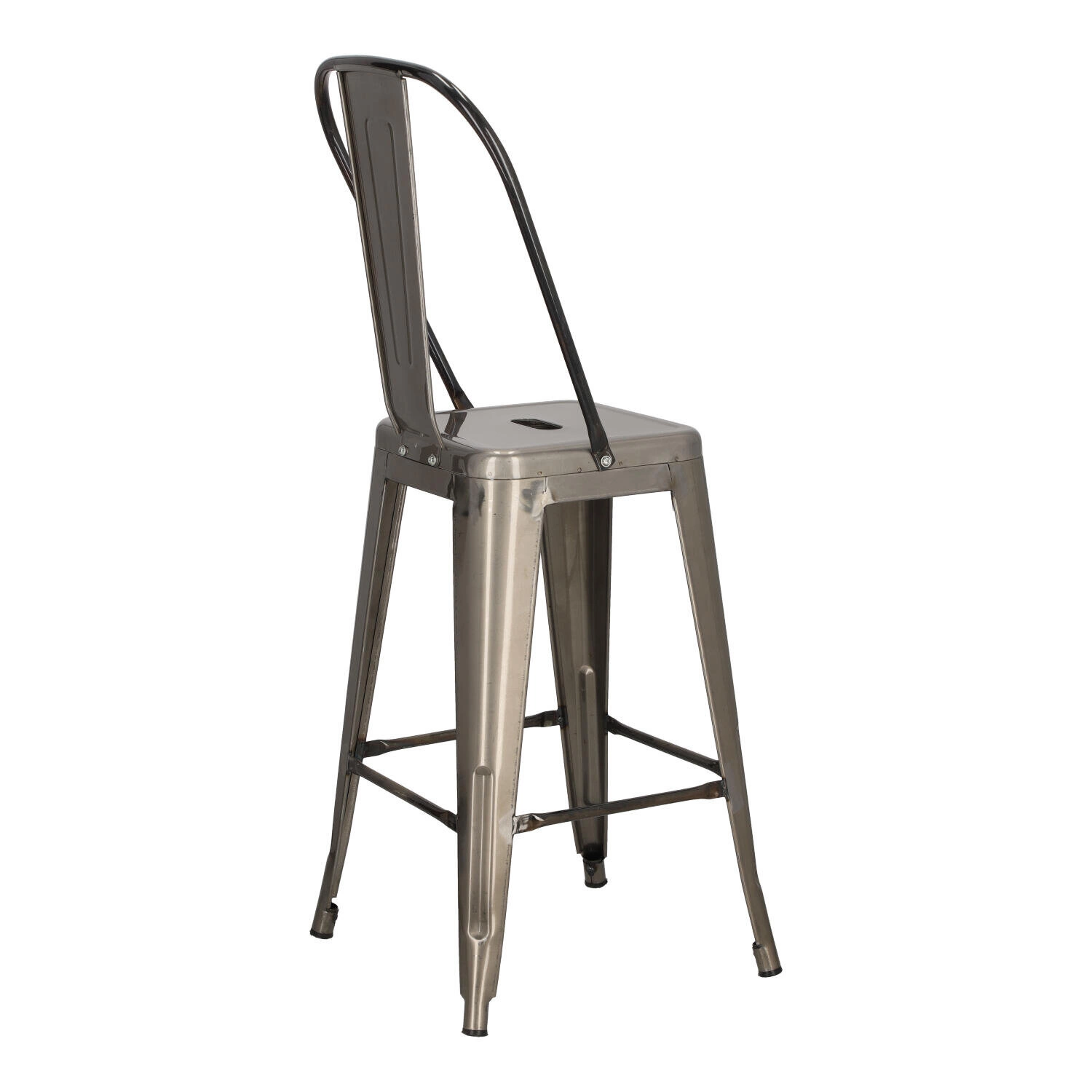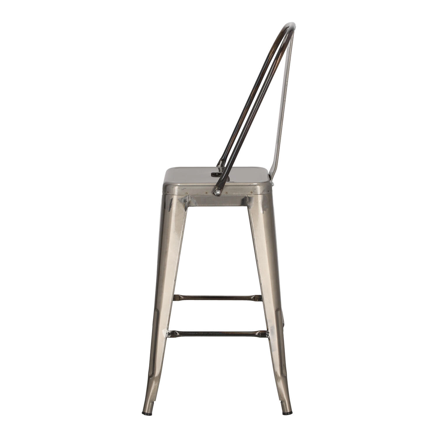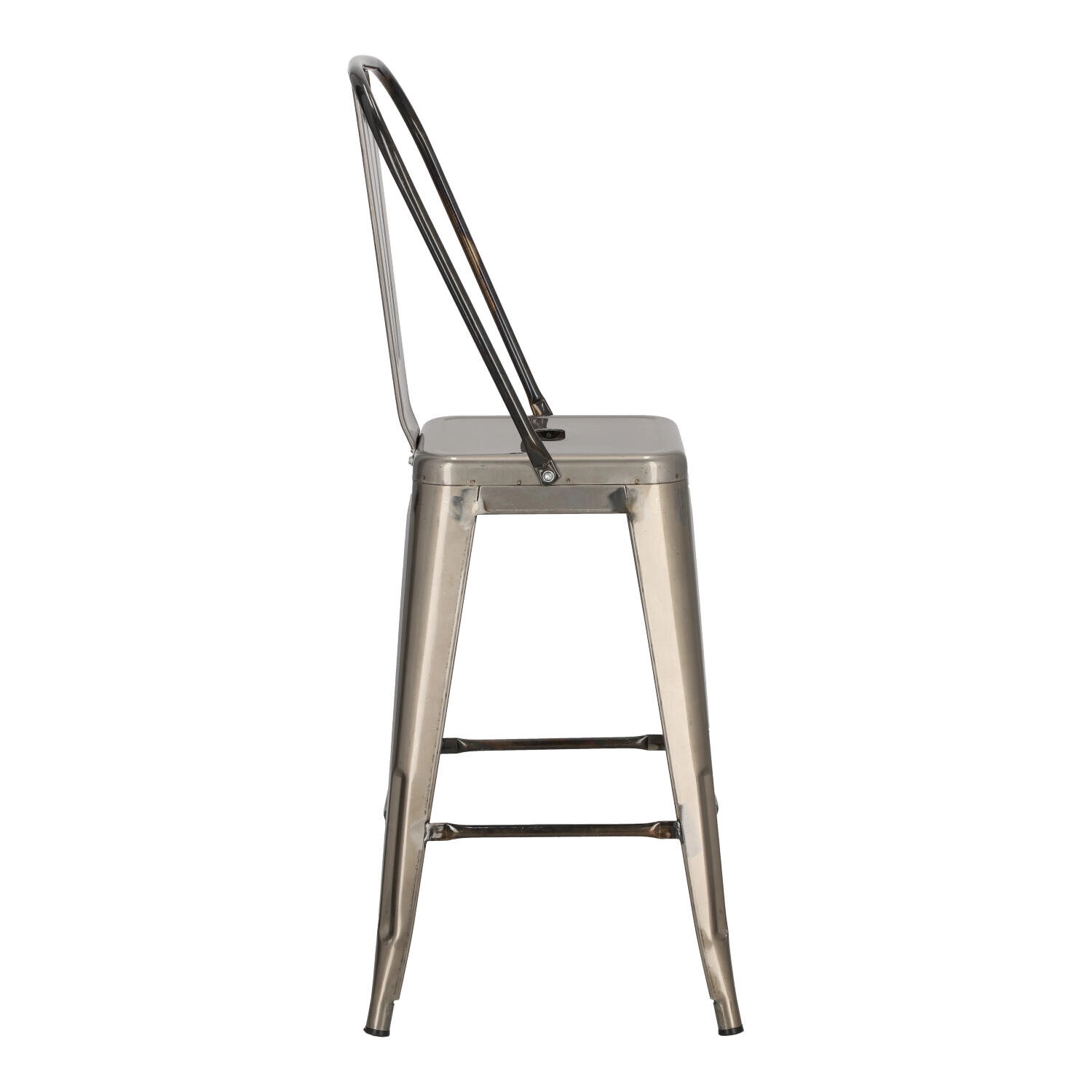 Hoker Paris Back 66 cm metalowy z oparciem industrialny do wyspy kuchennej srebrny D2.DESIGN