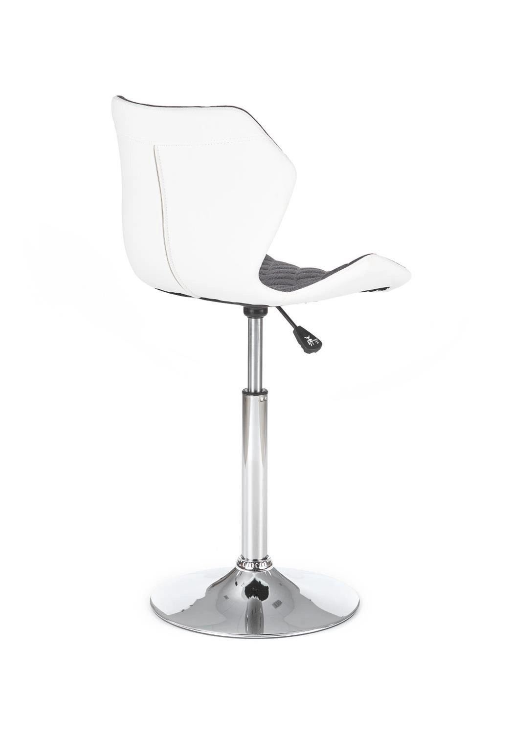 Hoker Quiz obrotowy szary - Nowoczesny styl i wygoda dla Twojej kuchni | Intesi Hoker Quiz to elegancki i nowoczesny hoker barowy, który nadaje się doskonale do kawiarni, kuchni lub jadalni. Jego metalowa podstawa w formie jednej nogi zapewnia stabilność i solidność, a jednocześnie dodaje mu wyjątkowego charakteru. Hoker nie posiada podłokietników, dzięki czemu zapewnia swobodę ruchów i komfort użytkowania. Maksymalne obciążenie wynosi 100 kg, co świadczy o jego solidnej konstrukcji i bezpieczeństwie użytkowania. Siedzisko hokera wykonane jest ze skóry ekologicznej w kolorze białym i tkaniny w kolorze szarym. Takie połączenie kolorów dodaje mu elegancji i pasuje do wielu różnych wnętrz. Regulacja wysokości siedziska (57 - 79 cm) umożliwia dostosowanie hokera do różnych stołów i blatów, co pozwala na swobodne siedzenie w wygodnej pozycji. Hoker Quiz charakteryzuje się również kompaktowymi wymiarami (szerokość 48 cm, głębokość 53 cm) i niską wagą 7,2 kg, dzięki czemu można go łatwo przemieszczać i przechowywać. Quiz to hoker, który poza atrakcyjnym wyglądem oferuje także wygodę i funkcjonalność, tworząc idealne miejsce do spotkań w kawiarni lub rodzinnych posiłków przy kuchennym blacie. O tym warto pamiętać! Hoker Quiz Obrotowy - nowoczesny styl i wygoda dla Twojej kuchni. Metalowa podstawa w formie jednej nogi zapewnia stabilność i unikalny charakter. Brak podłokietników dla swobody ruchów i większego komfortu użytkowania. Regulacja wysokości siedziska pozwala na dopasowanie hokera do różnych stołów. Eko skóra i tkanina dodają elegancji i pasują do wielu wnętrz.