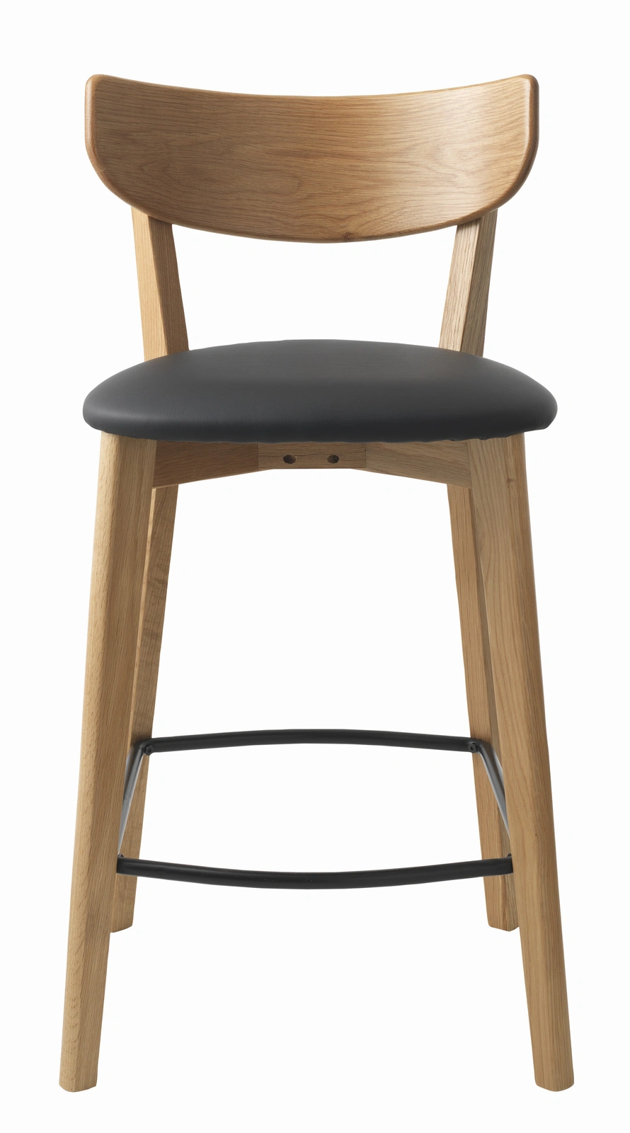 Hoker Ropet marki UNIQUE Furniture to połączenie naturalnego drewna dębowego i eleganckiej, czarnej tapicerki, które doskonale wpisuje się w nowoczesne aranżacje kuchni oraz jadalni. Ten tapicerowany hoker z oparciem o wysokości siedziska 67 cm zapewnia komfort siedzenia przy wyspie kuchennej czy wysokim stole. Stabilna podstawa z drewna dębowego w półmatowym wykończeniu oraz ergonomicznie wyprofilowane siedzisko z ekoskóry czynią ten model zarówno stylowym, jak i praktycznym wyborem do codziennego użytku.