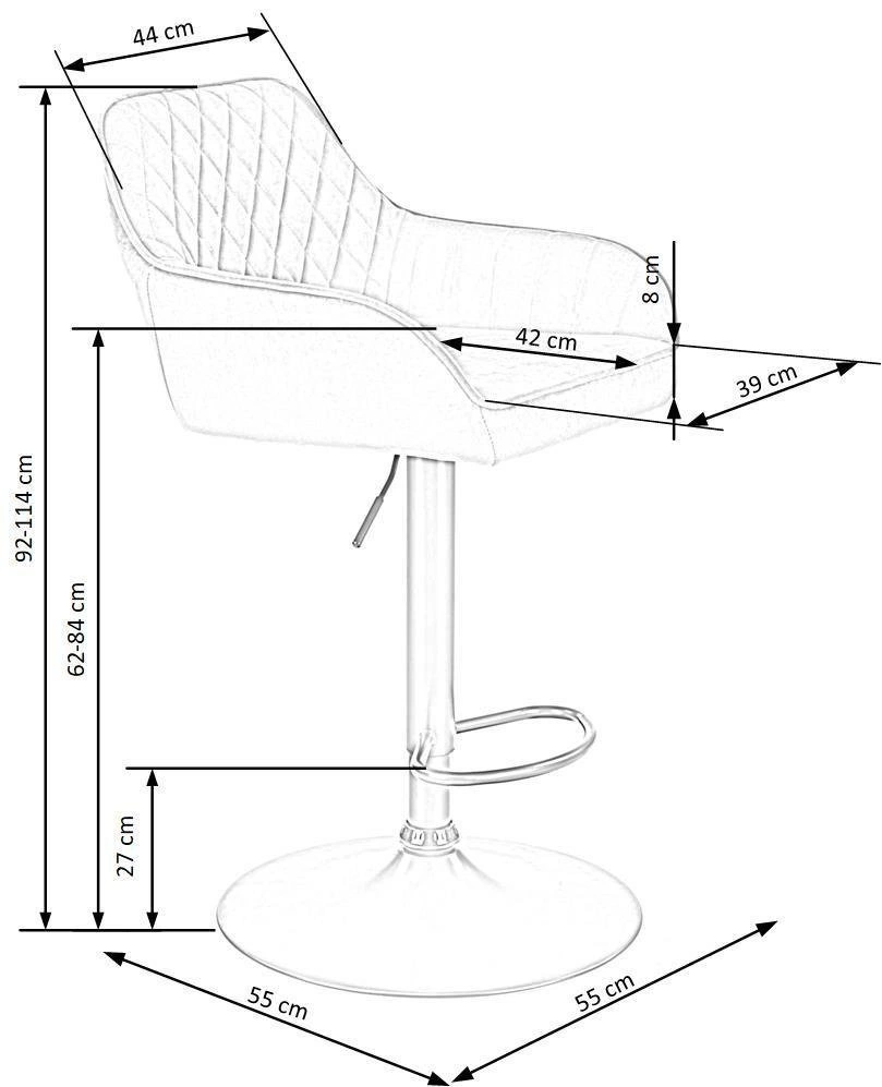 Dodaj minimalistycznego akcentu dzięki eleganckiej szarości Czy marzysz o dodaniu stylowego akcentu do swojego wnętrza? Aksamitny stołek barowy Roxie od Intesi jest idealnym rozwiązaniem! Ten nowoczesny i elegancki mebel będzie doskonale pasować do każdego współczesnego domu lub biura. Jego szare wykończenie sprawia, że jest nie tylko stylowy, ale także ponadczasowy. Jedną z największych zalet hokera Roxie jest jego regulowana wysokość. Dzięki temu możesz dostosować go do swoich indywidualnych potrzeb i zapewnić sobie optymalną pozycję do codziennej pracy. Niezależnie od tego, czy jesteś wyższy czy niższy, ten stołek barowy zapewni Ci pełen komfort. Nie tylko wysokość, ale także obrót o 360 stopni sprawia, że hoker Roxie jest niezwykle wygodny. Możesz swobodnie obracać się wokół własnej osi, co ułatwia interakcję z gośćmi i zapewnia jeszcze większy luksus. Stabilność i trwałość to kolejne atuty tego stołka barowego. Jego stalowa podstawa, pokryta czarną farbą, nie tylko wygląda elegancko, ale także zapewnia solidność i długotrwałość. Nie musisz się martwić o to, że mebel się zepsuje czy zniszczy — Roxie jest stworzony, aby służyć Ci przez wiele lat. Dodatkowym plusem hokera Roxie jest jego miękkie siedzisko z aksamitnej tkaniny. To idealne miejsce do zatopienia się po ciężkim dniu pracy. Możesz wygodnie usiąść, odprężyć się i cieszyć się chwilą relaksu. Co warto wiedzieć przed zakupem? Regulowana wysokość dla optymalnej pozycji Miękkie siedzisko z aksamitnej tkaniny dla maksymalnego komfortu Doskonały dodatek do każdego współczesnego domu lub biura
