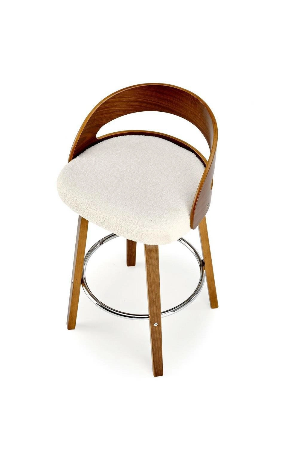 Hoker Ruby kremowy/ orzech Hoker Ruby to świetny wybór dla każdego, kto szuka stylowego i wygodnego mebla. Siedzisko jest pokryte tkaniną boucle przypominające baranka, przez co jest bardzo miękkie, podstawa z kolei jest ze sklejki giętej w kolorze orzecha - czysta klasyka i elegancka. Połączenie tych dwóch materiałów tworzy idealną kompozycję w stylu industrialnym. Stołek barowy dzięki wysokości 84 cm jest idealny rozmiarem do każdego pomieszczenia. A fakt, że ma zarówno oparcie, jak i podłokietniki, czyni go jeszcze bardziej wygodnym. Materiały użyte do produkcji tego hokera są najwyższej jakości, co gwarantuje trwałość i estetyczny wygląd przez wiele lat. Nóżki, wykończone w kolorze orzecha, podkreślają elegancki charakter mebla i dodają mu odrobinę powagi. Hoker zapewnia wygodne użytkowanie, zwłaszcza w przypadku jadalni przy wyspie lub w luksusowych przestrzeniach hotelarskich. Ten modny hoker doskonale wpisuje się w trendy wnętrzarskie, a jego wyjątkowy design przyciąga wzrok i staje się centralnym elementem dekoracyjnym. Jest to nie tylko funkcjonalny mebel, ale także wyrazisty element wystroju, który doda charakteru i uroku pomieszczeniu. Co warto wiedzieć przed zakupem? Hoker Ruby to elegancki mebel, który wnosi elegancję do wnętrza. Wykonany z najwyższej jakości materiałów, takich jak tkanina boucle, gwarantuje trwałość i estetyczny wygląd na długie lata. Doskonały do jadalni przy wyspie lub w luksusowych przestrzeniach hotelarskich, ten hoker będzie funkcjonalnym i stylowym dodatkiem do wnętrza.