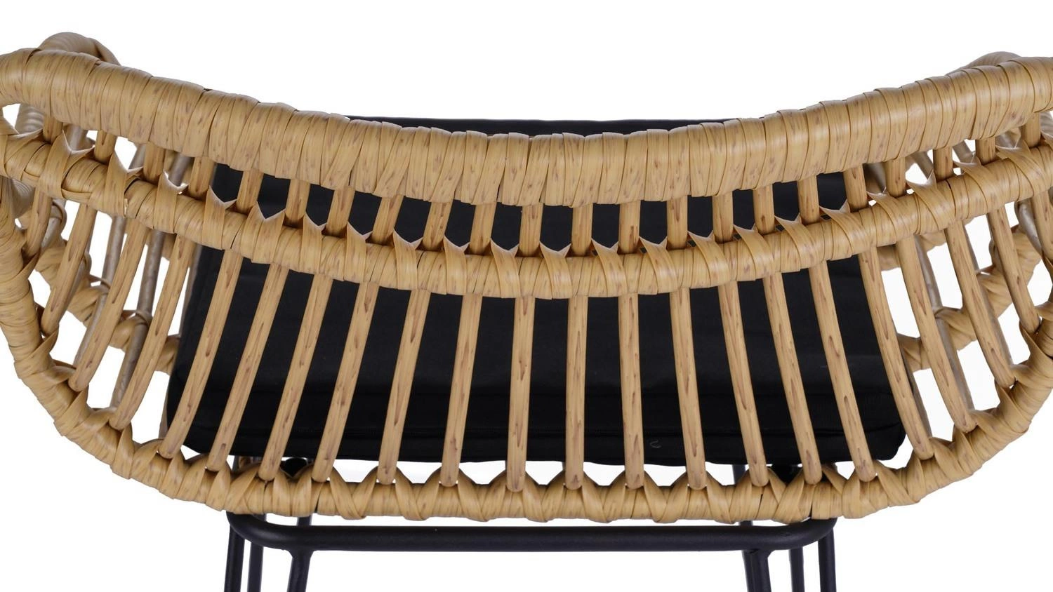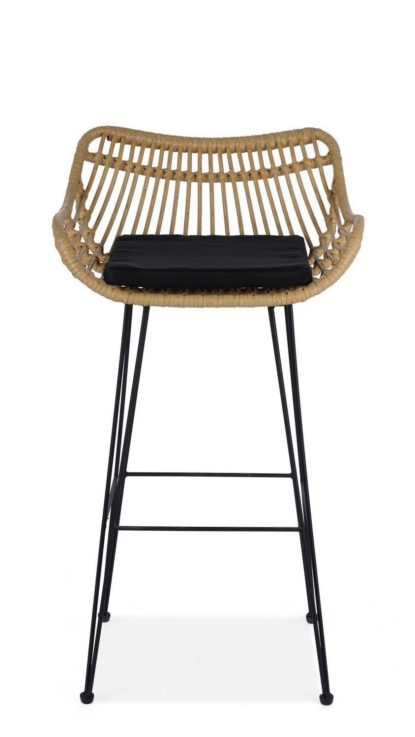 Hoker Surabaya zachwyca subtelnym designem inspirowanym stylem skandynawskim, w którym króluje prostota, funkcjonalność i przyjazność dla użytkownika. Siedzisko z syntetycznego rattanu w naturalnym kolorze, uzupełnione czarną poduszką, tworzy harmonijną całość z czarną metalową podstawą na czterech smukłych nogach. To idealne rozwiązanie dla osób, które cenią sobie naturalne materiały i minimalistyczne formy w kuchni lub jadalni.