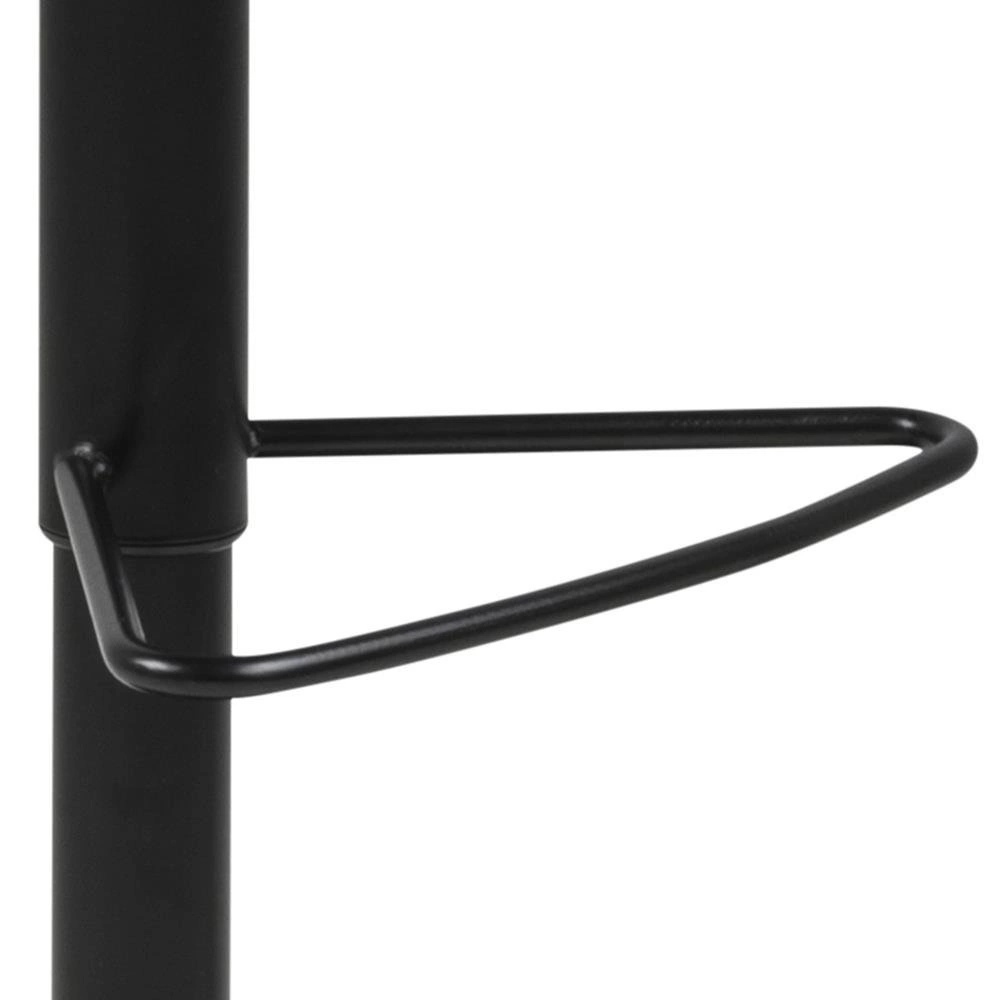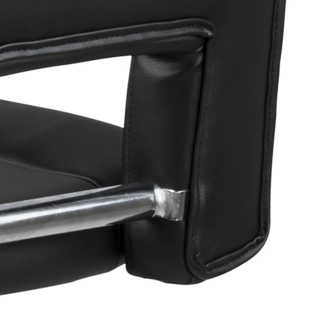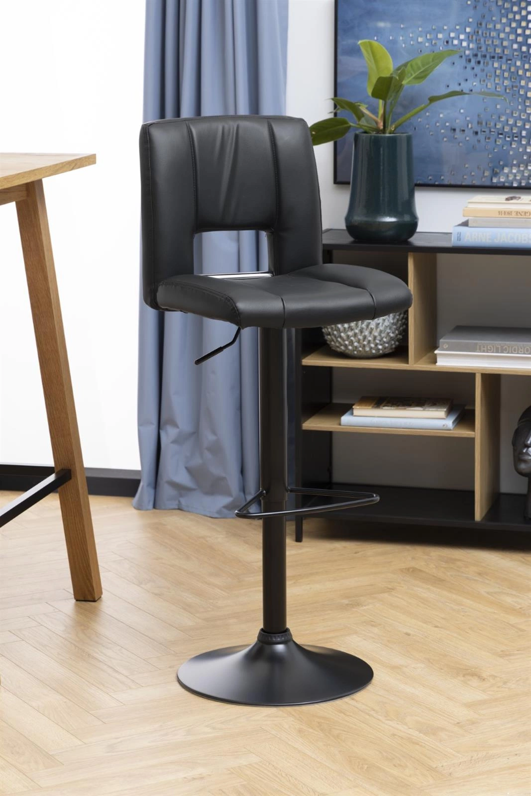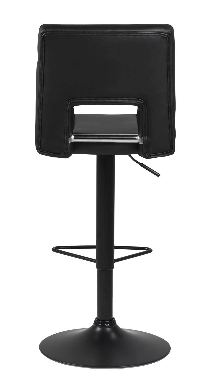Stołek barowy z oparciem to ostatnio najchętniej wybierany mebel do wyspy kuchennej. Nic dziwnego, hokery poza swoją funkcjonalnością dodają wnętrzom dobrego stylu i sprawiają, że pomieszczenie ma nowoczesny charakter. Hoker Sylvia to wiele korzyści w jednym produkcie. Jego siedzisko z wysokim oparciem wykonane zostało z pianki poliuretanowej, która zapewnia sprężystość i zapobiega odkształceniom. Powierzchnia wykończona została tapicerką z tkaniny PU leather look black BK1. Podstawę stanowi długa, smukła noga w kolorze czarnym o matowym wykończeniu. Zakończona jest ona płaskim talerzem zapewniającym stabilność. Ogromną zaletą jest możliwość regulacji wysokości siedziska za pomocą automatycznego systemu. Poza tym hoker posiada też podparcie dla nóg, które poprawia komfort siedzenia przy wysokim blacie.