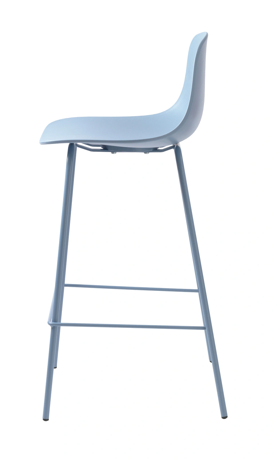 Hoker Whitby marki UNIQUE to nowoczesny stołek barowy z oparciem, wykonany z metalu w modnym niebieskim kolorze półmat. Dzięki wysokości siedziska 67 cm doskonale sprawdzi się zarówno przy wyspie kuchennej, jak i w otwartej jadalni. Solidna metalowa konstrukcja, ergonomiczne oparcie i praktyczny podnóżek zapewniają komfort na co dzień oraz efektowny wygląd, który podkreśli charakter nowoczesnych wnętrz.