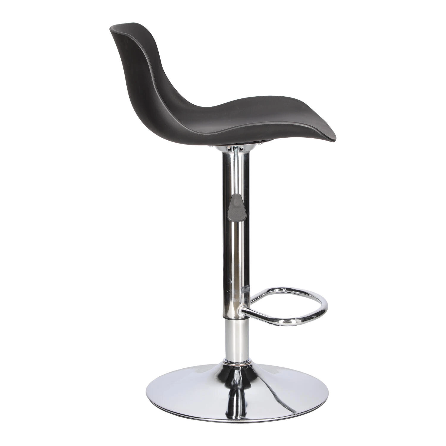 Stołek barowy marki Intesi to połączenie wygody i stylu. Czarny kolor siedziska i chromowana podstawa tworzą elegancką i nowoczesną estetykę, która pasuje do różnych wnętrz. Siedzisko o szerokości 40 cm i głębokości 33 cm zapewnia komfort siedzenia, a średnica talerza podstawy wynosząca 38 cm gwarantuje stabilność stołka. Wyprofilowane siedzisko wykonane z jednego kawałka polipropyleniu zwiększa komfort użytkowania.
