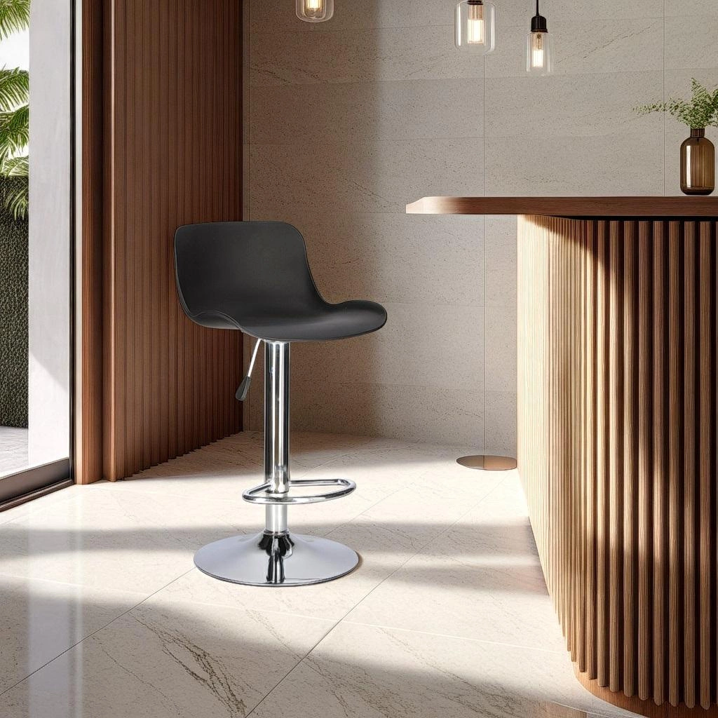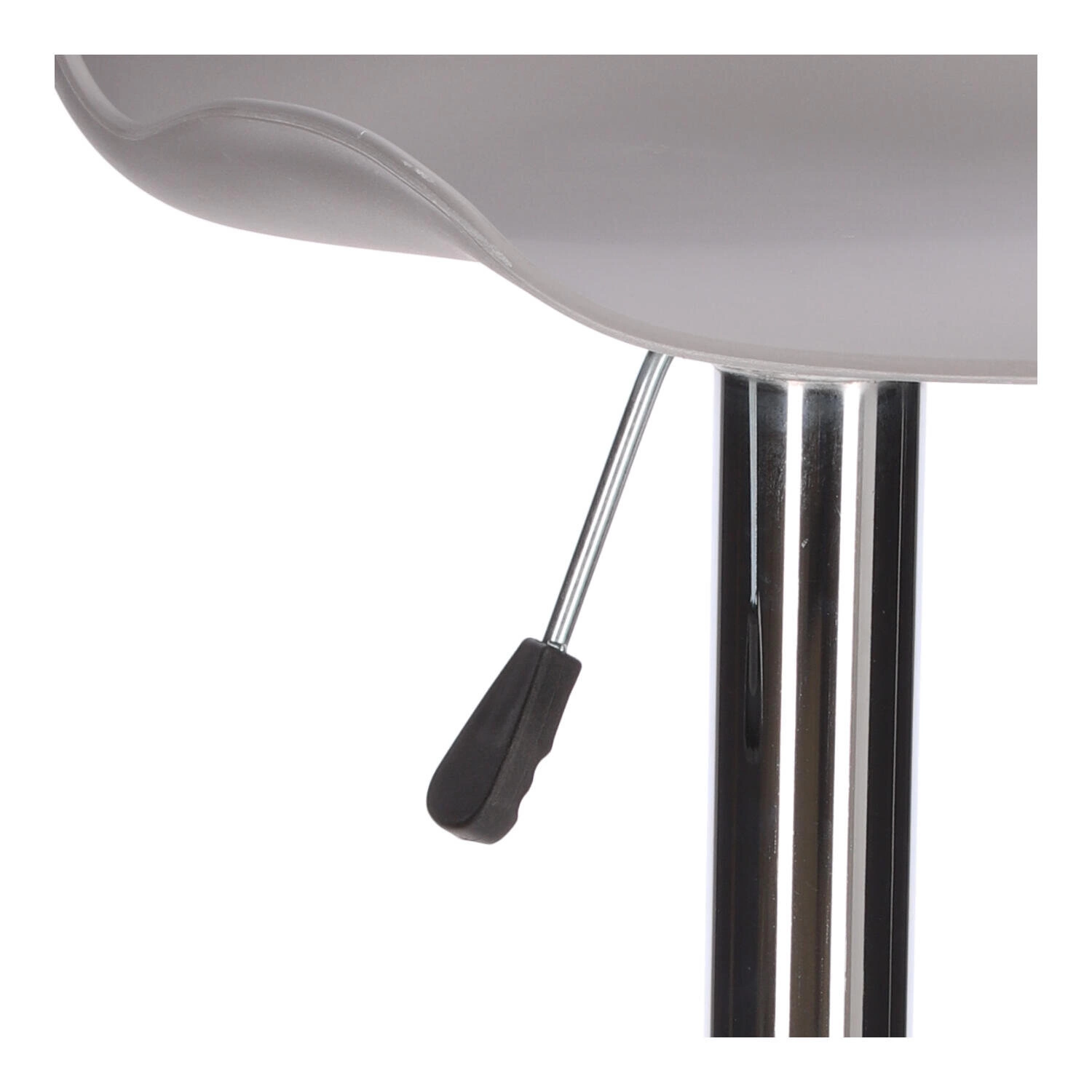 - Chromowana podstawa w kształcie trąbki nadaje stołkowi eleganckiego wyglądu.