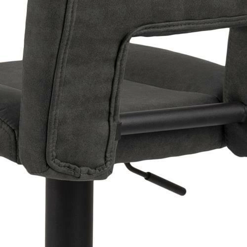 Stołek barowy z oparciem to ostatnio najchętniej wybierany mebel do wyspy kuchennej. Nic dziwnego, hokery poza swoją funkcjonalnością dodają wnętrzom dobrego stylu i sprawiają, że pomieszczenie ma nowoczesny charakter. Hoker Sylvia to wiele korzyści w jednym produkcie. Jego siedzisko z wysokim oparciem wykonane zostało z pianki poliuretanowej, która zapewnia sprężystość i zapobiega odkształceniom. Powierzchnia wykończona została tapicerką z tkaniny Preston fabric anthracite 96. Podstawę stanowi długa, smukła noga w kolorze czarnym o matowym wykończeniu. Zakończona jest ona płaskim talerzem zapewniającym stabilność. Ogromną zaletą jest możliwość regulacji wysokości siedziska za pomocą automatycznego systemu. Poza tym hoker posiada też podparcie dla nóg, które poprawia komfort siedzenia przy wysokim blacie.