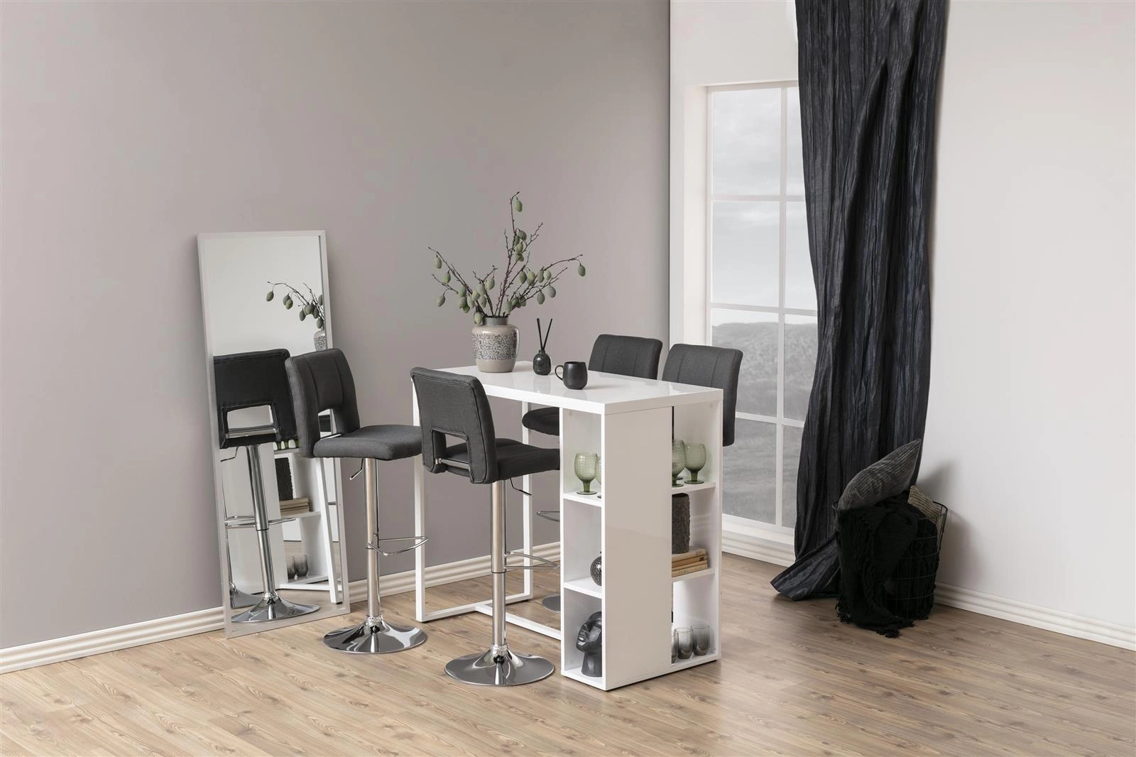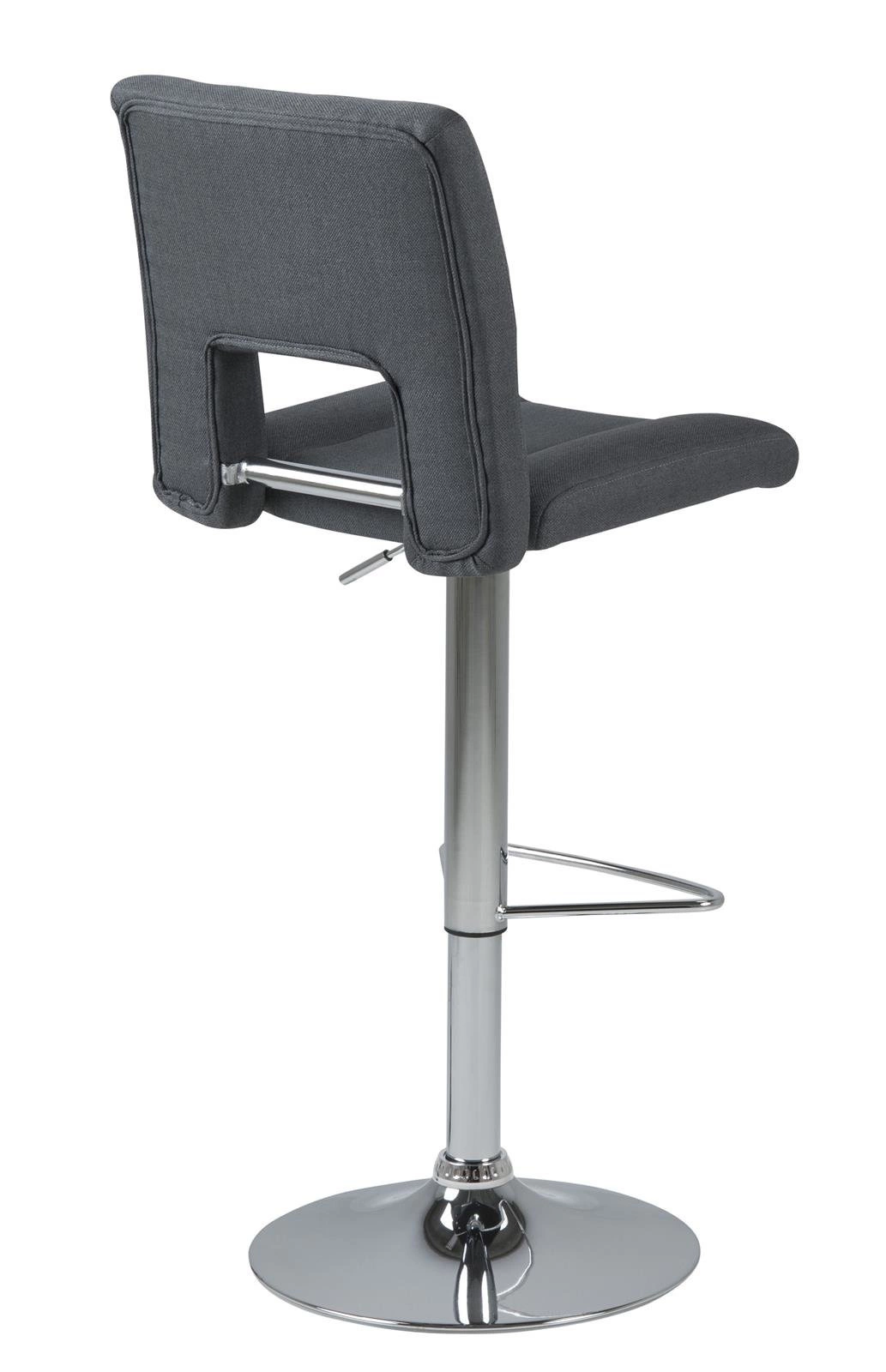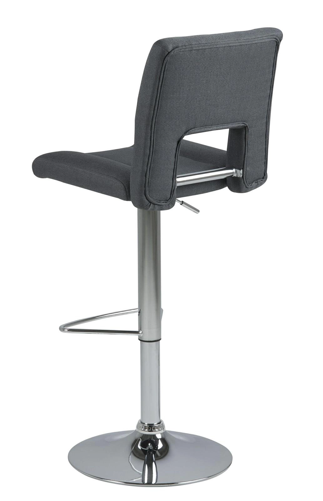 Stołek barowy z oparciem to ostatnio najchętniej wybierany mebel do wyspy kuchennej. Nic dziwnego, hokery poza swoją funkcjonalnością dodają wnętrzom dobrego stylu i sprawiają, że pomieszczenie ma nowoczesny charakter. Hoker Sylvia to wiele korzyści w jednym produkcie. Jego siedzisko z wysokim oparciem wykonane zostało z pianki poliuretanowej, która zapewnia sprężystość i zapobiega odkształceniom. Powierzchnia wykończona została tapicerką z tkaniny Corsica fabric dark grey 20. Podstawę stanowi długa, smukła noga ze szczotkowanego metalu w kolorze chromu. Zakończona jest ona płaskim talerzem zapewniającym stabilność. Ogromną zaletą jest możliwość regulacji wysokości siedziska za pomocą automatycznego systemu. Poza tym hoker posiada też podparcie dla nóg, które poprawia komfort siedzenia przy wysokim blacie.