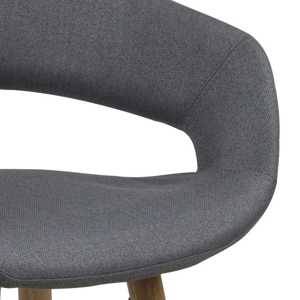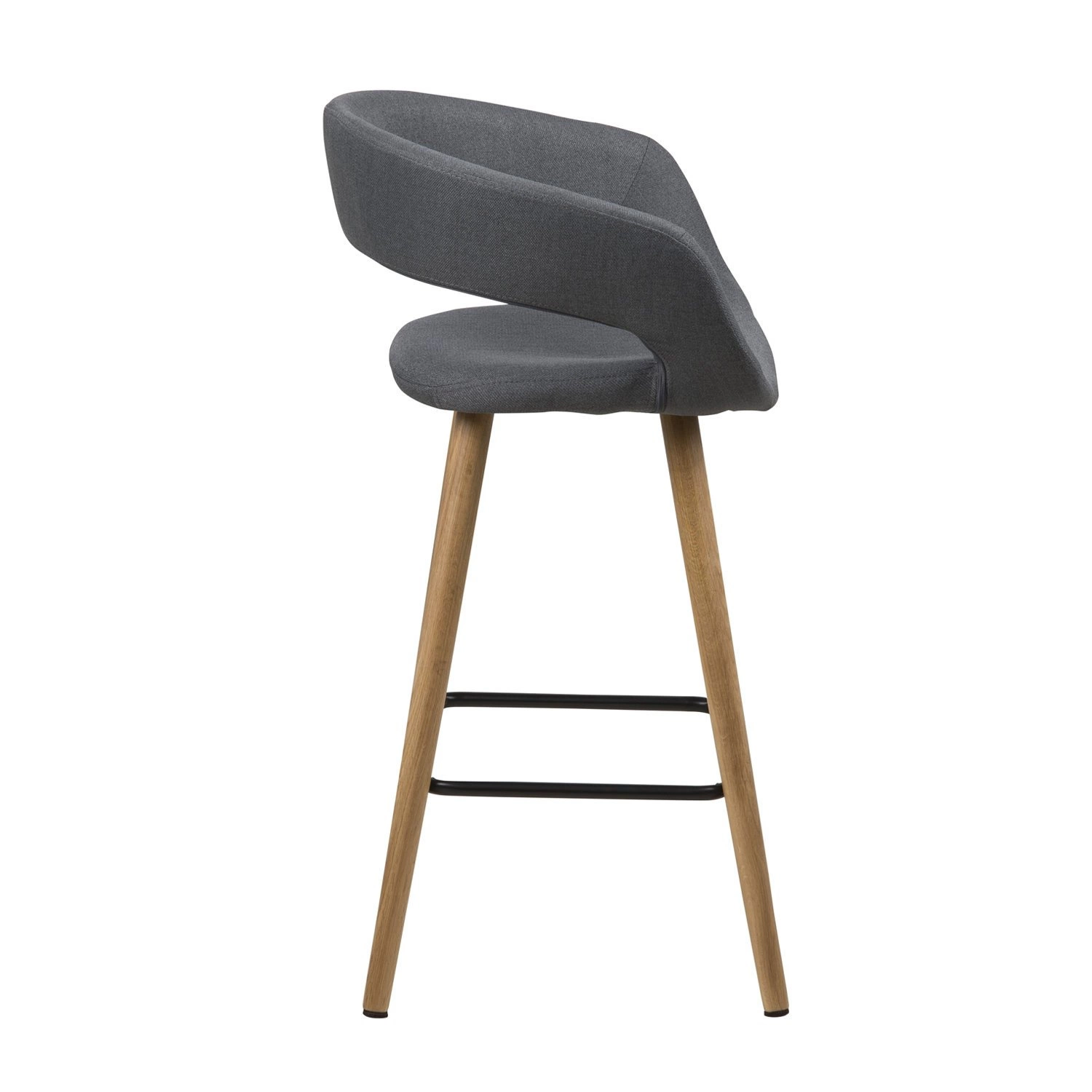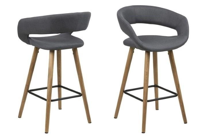 Styl nowoczesny daje architektom i dekoratorom wielkie pole do popisu. Styl ten nie jest jasno określony, dzięki czemu możemy dowolnie kombinować z końcowym efektem nowoczesnych przestrzeni. Stołek barowy Grace to doskonale rozwiązanie do otwartej kuchni lub jadalni z wysoką wyspą. Uwagę przyciąga tapicerowane siedzisko o ciekawym gładko zakończonym kształcie. Siedzisko obite miękką tkaniną dostępne jest w dwóch odcieniach eleganckiej szarości, która w idealny sposób będzie współgrać z resztą aranżacji. Podstawa to natomiast cztery dębowe nogi pokryte warstwą oleju, która uwydatnia naturalny kolor oraz walory drewna. Dodatkowo zamieszczono czarny metalowy wspornik, łączący ze sobą nogi podstawy, który sprawdzi się w roli wygodnego podnóżka.