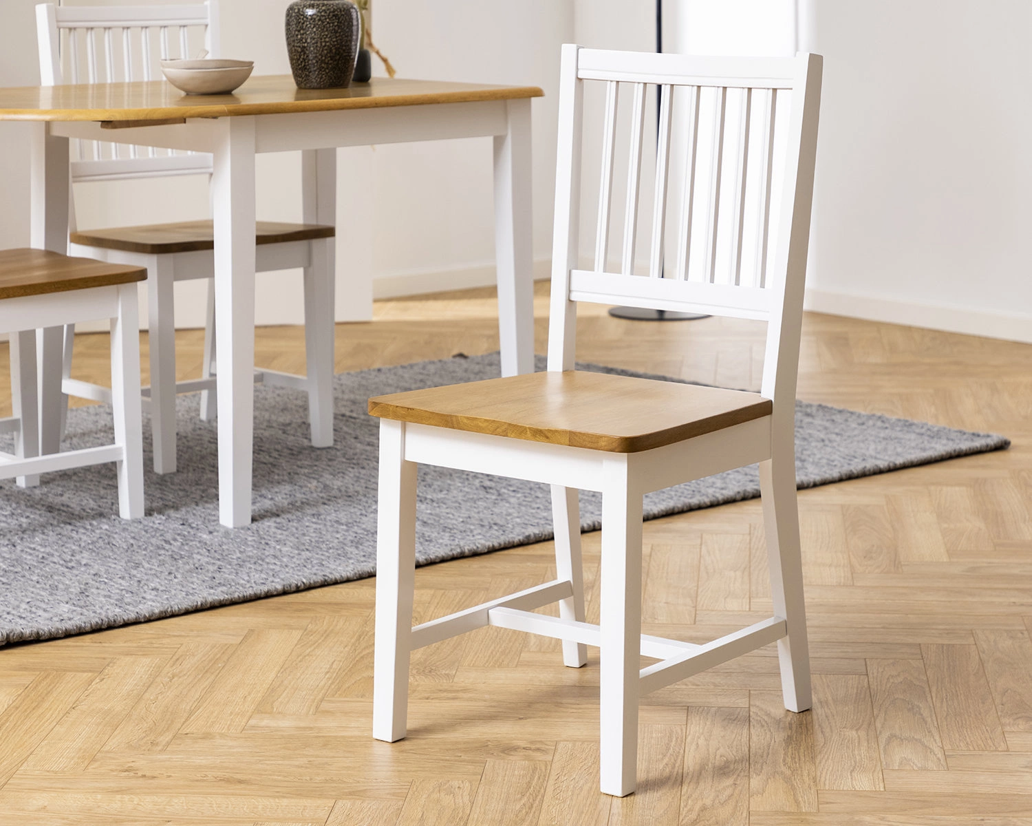 Krzesło Brisbane wykonane zostało z drewna kauczukowego, wyjątkowo odpornego oraz wytrzymałego. Rama krzesła pomalowana została na kolor biały, natomiast siedzisko pozostało w kolorze naturalnym. Krzesło doskonale sprawdzi się w restauracji, domowej jadalni czy pokoju dziecka. Prosta forma oraz użycie drewna w realizacji projektu sprawia, że krzesło prezentować się będzie doskonale w każdym wnętrzu.