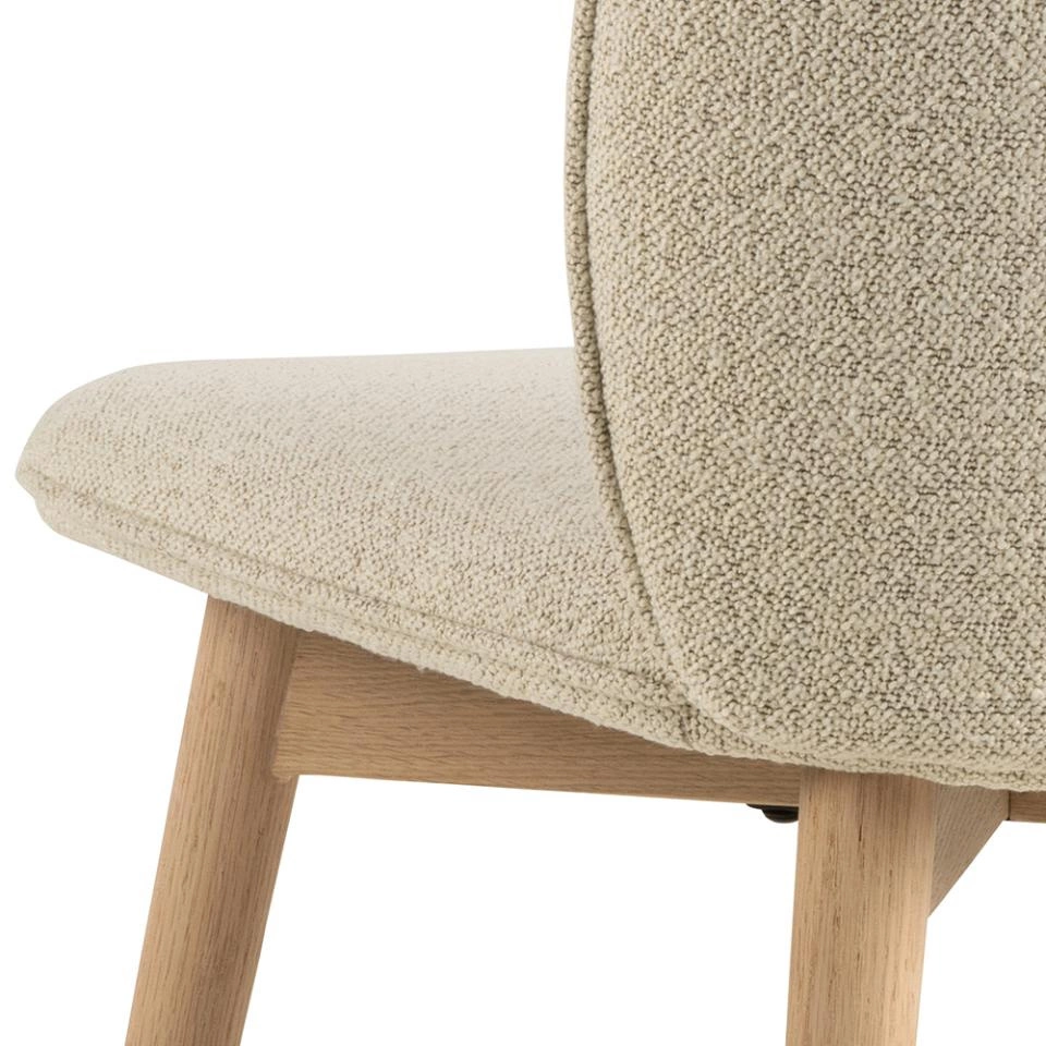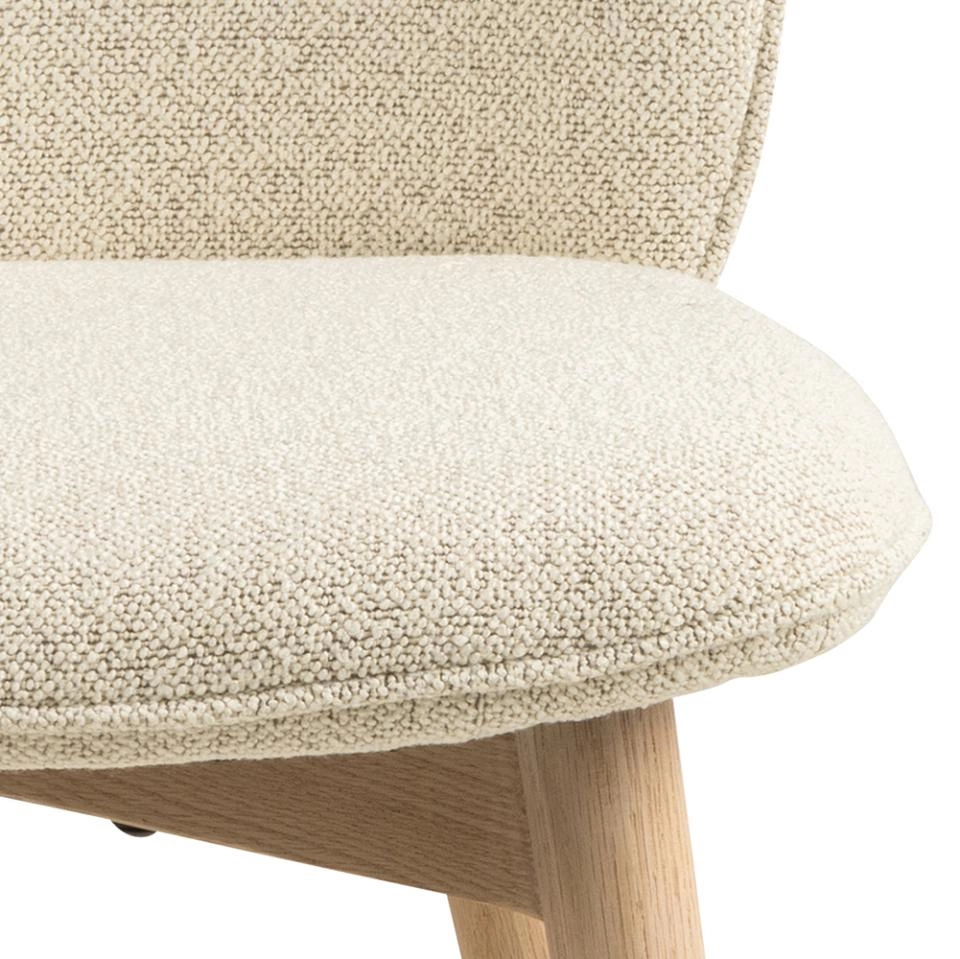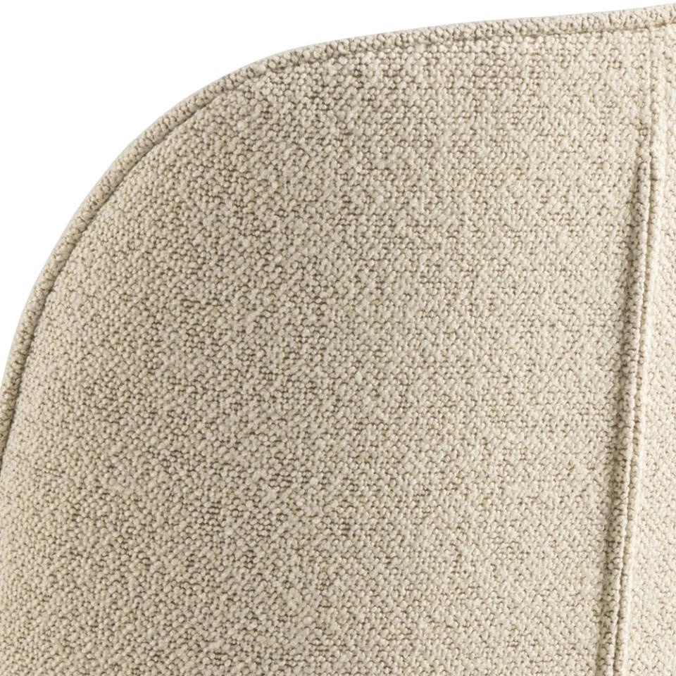 - Unikalna tapicerka typu bouclé i drewniane nogi nadają meblowi skandynawskiego charakteru.