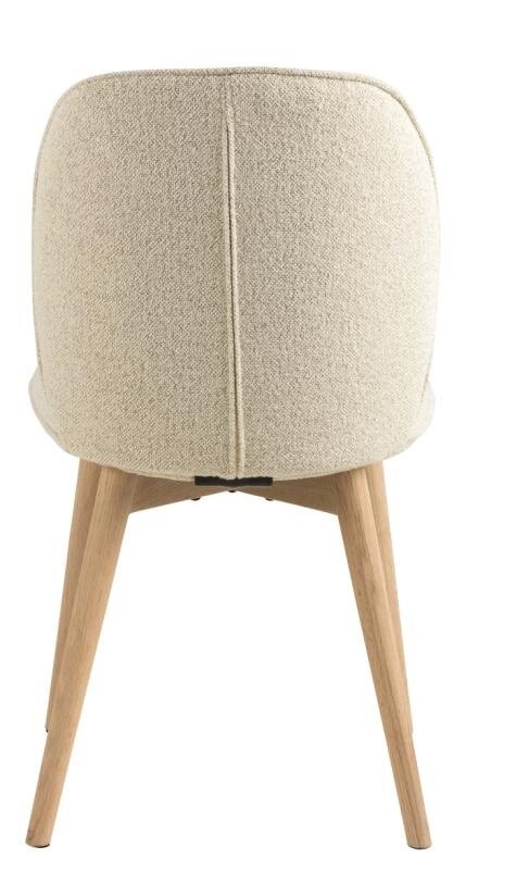 Design krzesła Cindy inspirowany jest skandynawską prostotą i elegancją. Nogi mebla wykonane są z drewna kauczukowego, co gwarantuje jego trwałość i stabilność. Beżowa tapicerka typu bouclé, ozdobiona lamówką, dodaje krzesłu nowoczesności i stylu. Jest to idealne rozwiązanie dla osób ceniących sobie nie tylko funkcjonalność, ale również estetykę.