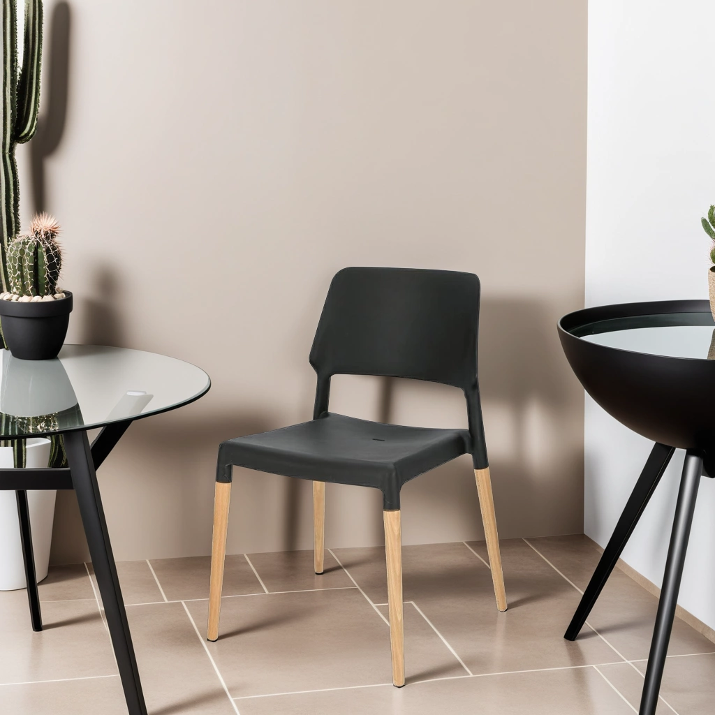 Krzesło Cole z czarnym polipropylenowym siedziskiem to genialne połączenie nowoczesnej technologii i czystej skandynawskiej formy. Smukłe bukowe nogi idealnie harmonizują z ciemnym siedzeniem z tworzywa. Lekkie krzesło o prostej formie jest idealnym wyborem do nowoczesnej jadalni oraz salonu. Czarne polipropylenowe siedzisko o wymiarach 40 cm x 42 cm jest nie tylko łatwe do czyszczenia, ale dodatkowo wyposażone w dyskretny otwór, który pomoże w osuszeniu krzesła w razie jego zalania. Mimo lekkiej konstrukcji krzesło z tworzywa jest niezwykle wytrzymałe (maksymalne obciążenie to aż 120 kg!). Dzięki możliwości sztaplowania świetnie sprawdzi się również jako eleganckie krzesło konferencyjne.