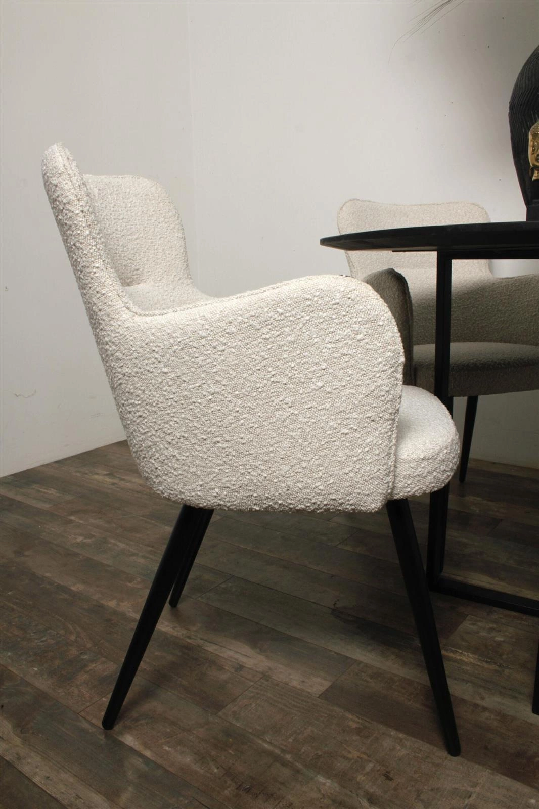 Krzesło Cherson tapicerowane jest tkaniną, która wyglądem i fakturą przypomina owczą wełnę. Jest miękka w dotyku, bardzo przyjemna oraz stanowi modny element designu.
