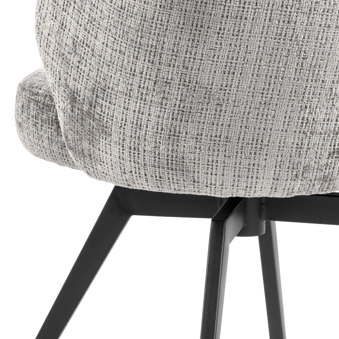 Prezentowane krzesło Darlene to połączenie nowoczesnego designu z niezwykłym komfortem użytkowania. Jego zaokrąglone siedzisko, pokryte miękką, szarą tkaniną o wyraźnej fakturze, wprowadza do wnętrza nutę elegancji. Krzesło wyposażone jest w sprężyny kieszeniowe, które gwarantują wygodę podczas siedzenia. Dodatkowym atutem jest funkcja obrotu i automatycznego powrotu, które ułatwiają poruszanie się przy minimalnym wysiłku.