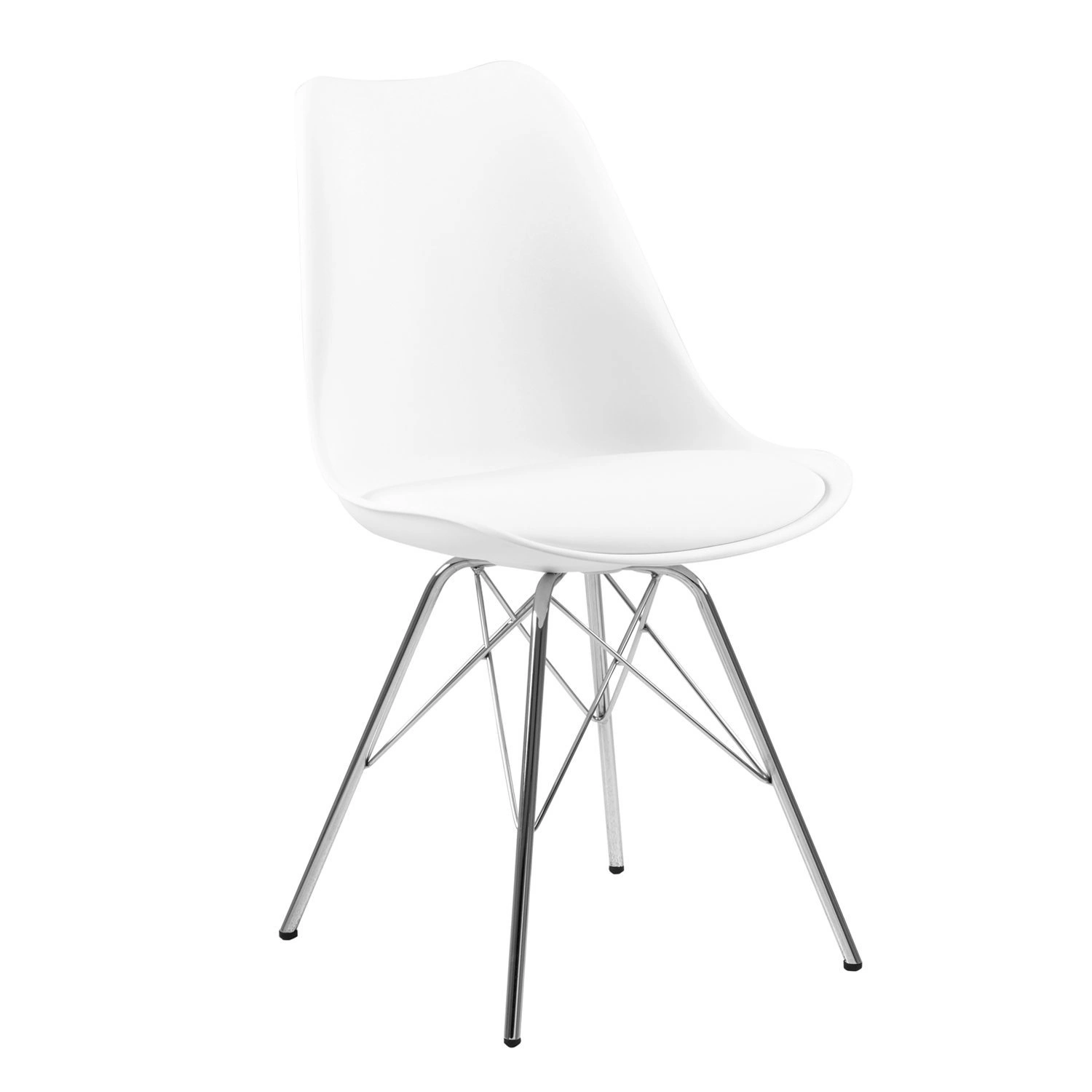 Szukasz rozwiązań, które łączą w sobie funkcjonalność i elegancję? Krzesło Eris to mebel, który wyróżnia wyjątkowa lekkość i delikatność formy. Jego profilowane siedzisko posiada subtelnie zaokrąglone krawędzie, które pozwalają na wysoki komfort użytkowania. Dzięki temu bez problemu będziesz mógł spędzić na nim długie godziny przy rodzinnym stole lub podczas pracy przy biurku. Stworzona z polipropylenu forma została połączona ze skórą ekologiczną w siedzisku, która jest niezwykle miła w dotyku i zapewnia ciekawy wygląd. Subtelność tego wygodnego krzesła podkreśla metalowa chromowana podstawa w odcieniu eleganckiego srebra. Pomiędzy 4 nogami znajdują się dodatkowe wsporniki, które sprawiają, że konstrukcja jest stabilna i wytrzymała, przez co może unieść do 120 kg.