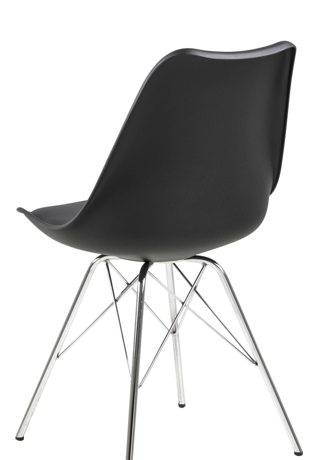 Szukasz rozwiązań, które łączą w sobie funkcjonalność i elegancję? Krzesło Eris to mebel, który wyróżnia wyjątkowa lekkość i delikatność formy. Jego profilowane siedzisko posiada subtelnie zaokrąglone krawędzie, które pozwalają na wysoki komfort użytkowania. Dzięki temu bez problemu będziesz mógł spędzić na nim długie godziny przy rodzinnym stole lub podczas pracy przy biurku. Stworzona z polipropylenu forma została połączona ze skórą ekologiczną w siedzisku, która jest niezwykle miła w dotyku i zapewnia ciekawy wygląd. Subtelność tego wygodnego krzesła podkreśla metalowa chromowana podstawa w odcieniu eleganckiego srebra. Pomiędzy 4 nogami znajdują się dodatkowe wsporniki, które sprawiają, że konstrukcja jest stabilna i wytrzymała, przez co może unieść do 120 kg.