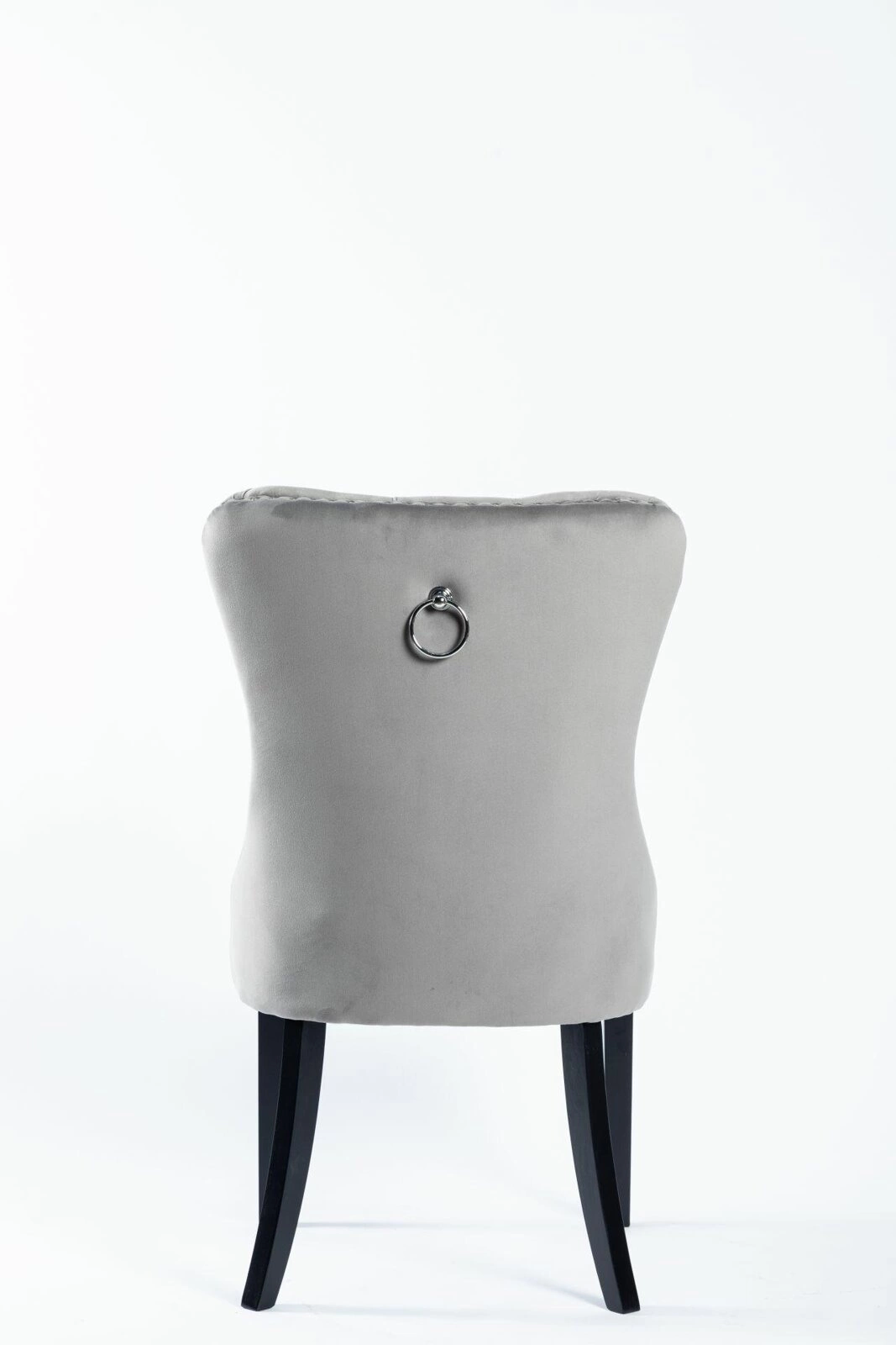 Jego precyzyjnie zaprojektowane wymiary - szerokość 56 cm, wysokość siedziska 50 cm, wysokość całkowita 98 cm oraz głębokość siedziska 45 cm - gwarantują odpowiednie wsparcie i komfort podczas siedzenia. Krzesło zostało wyposażone w tapicerkę z weluru, która nadaje mu elegancki wygląd i miękkość w dotyku. Drewniany stelaż dodaje mu przytulnego charakteru i zapewnia stabilność oraz trwałość. Dostępne w dwóch modnych kolorach - czarnym lub szarym - krzesło daje możliwość dopasowania do różnych stylów i aranżacji wnętrz, dodając im wyjątkowego uroku. Dzięki prostemu, a zarazem stylowemu designowi, krzesło Leal będzie doskonałym wyborem do jadalni, salonu czy biura, podkreślając charakter każdego pomieszczenia.