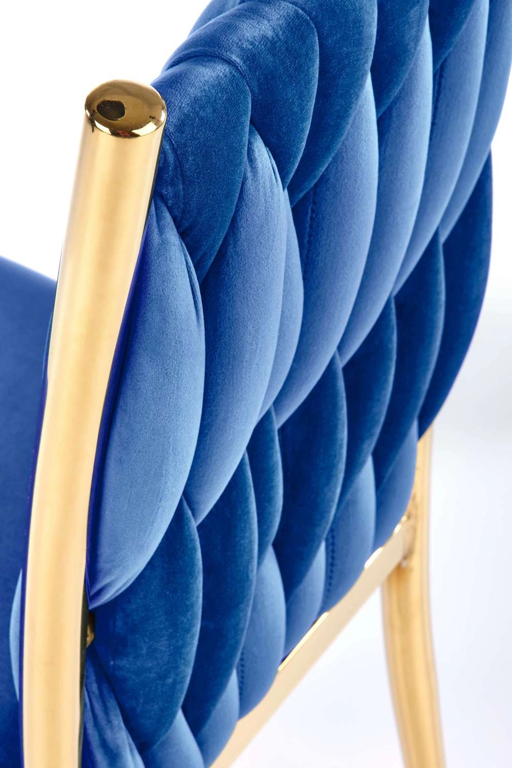 Granatowy welur w połączeniu z błyszczącymi złotymi nogami tworzy wyrazisty, nowoczesny akcent w każdej przestrzeni. Pikowane siedzisko i oparcie nadają krzesłu elegancji, która doskonale komponuje się zarówno z aranżacjami glamour, jak i minimalistycznymi. Krzesło Lina to nie tylko praktyczny mebel do jadalni – świetnie odnajdzie się także w salonie, przy toaletce czy w pokoju młodzieżowym, wnosząc do wnętrza odrobinę luksusu.