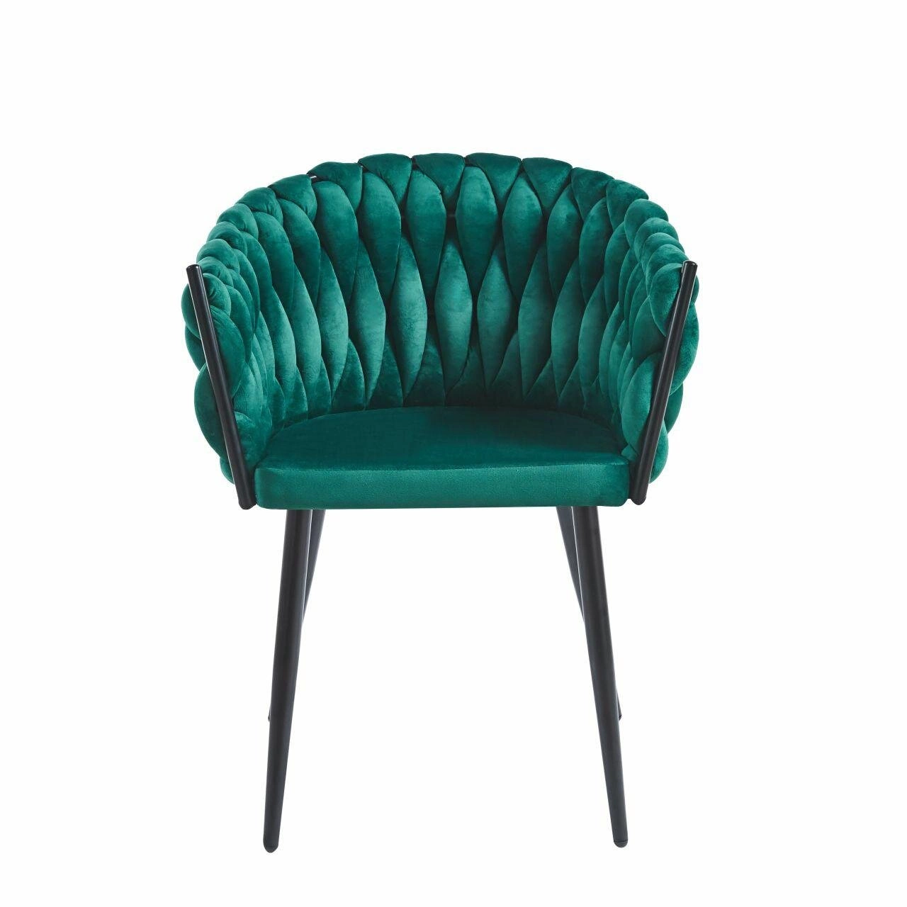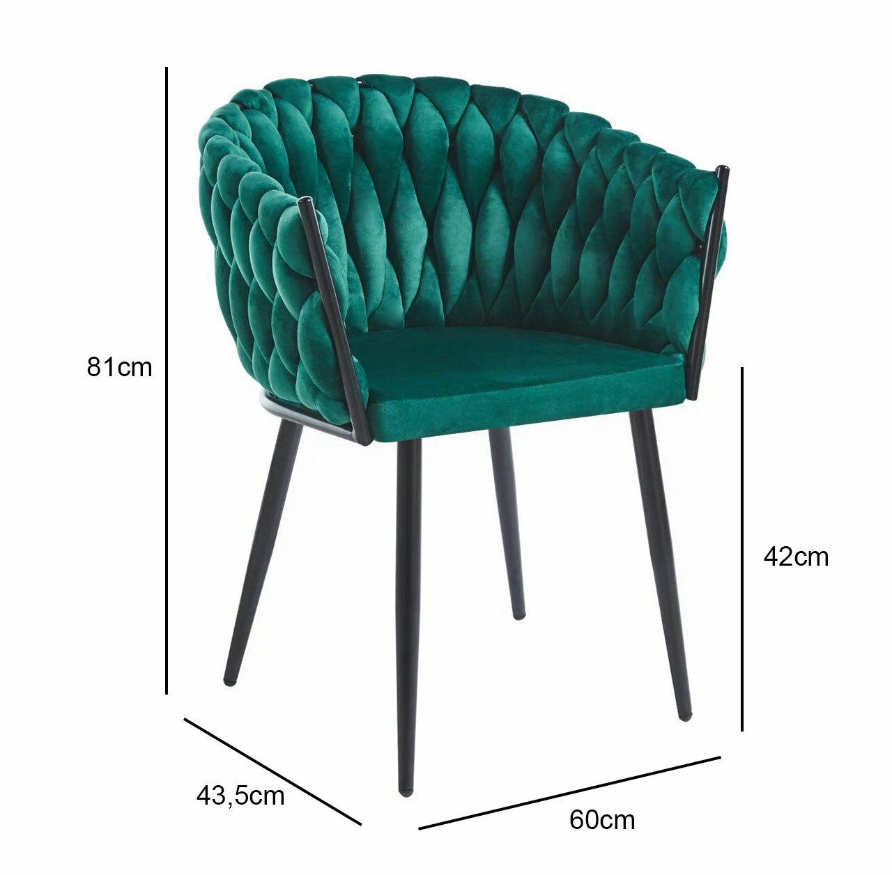 Krzesło do jadalni Malaya Intesi tapicerowane welur zielony z podłokietnikami glamour