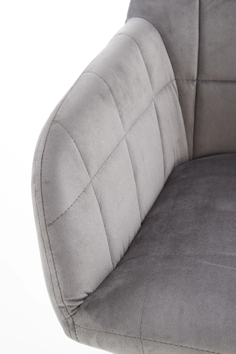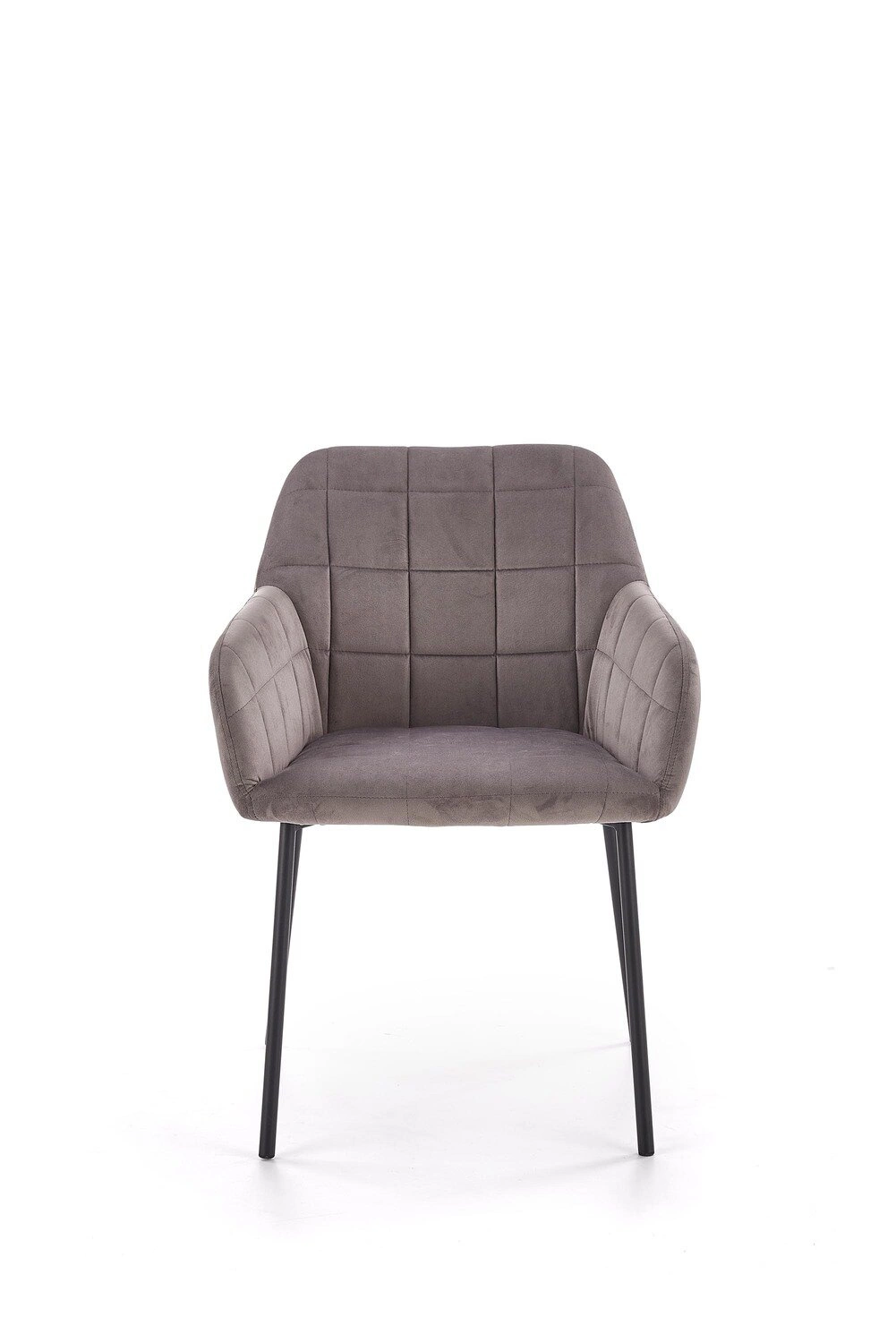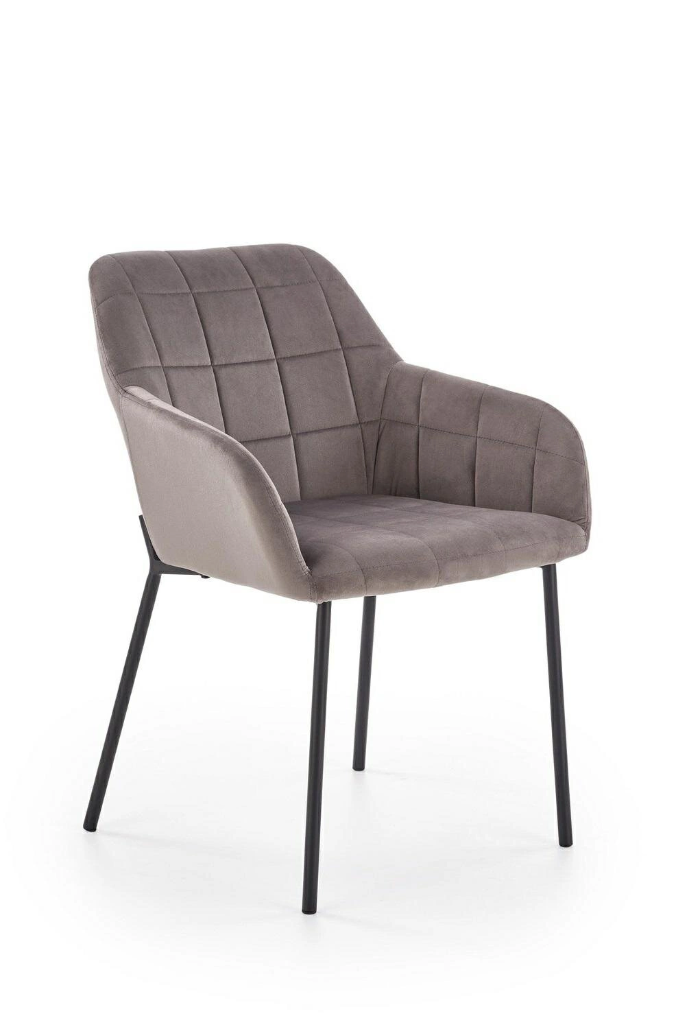 Krzesło do jadalni Minnesota marki Intesi to połączenie elegancji, komfortu i funkcjonalności. Tapicerowane miękkim welurem w szarym kolorze, wyposażone w wygodne podłokietniki i osadzone na czterech smukłych, czarnych nogach ze stali, zapewnia stylowy wygląd oraz stabilność. Dzięki optymalnym wymiarom (wysokość 80 cm, szerokość 58 cm, głębokość 57 cm) to krzesło idealnie sprawdzi się w nowoczesnej jadalni, kuchni czy salonie, oferując komfortowe miejsce do codziennych posiłków i spotkań.