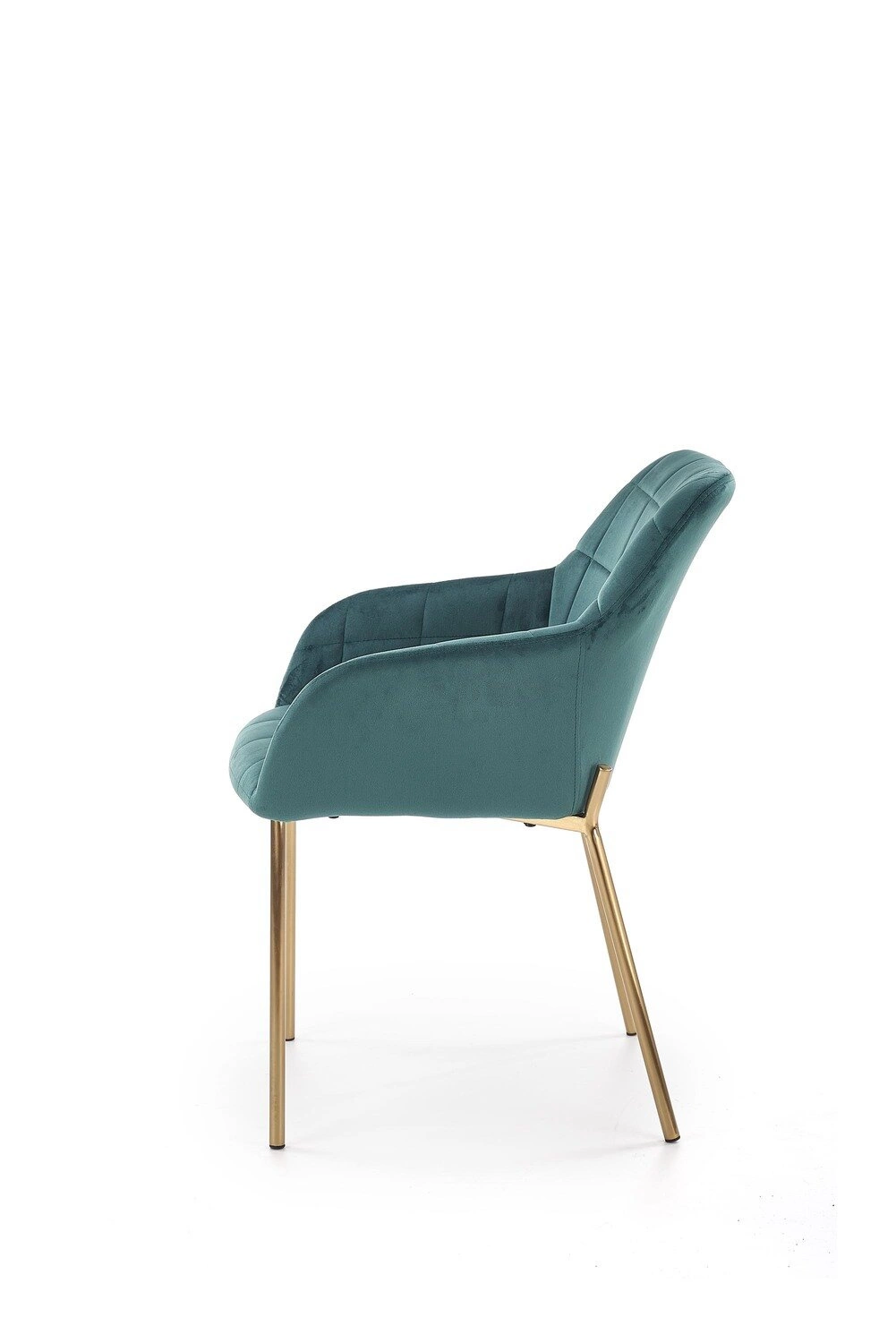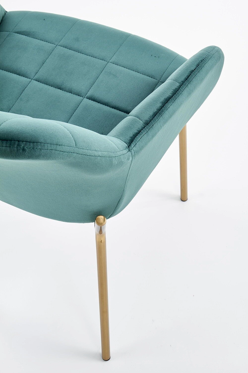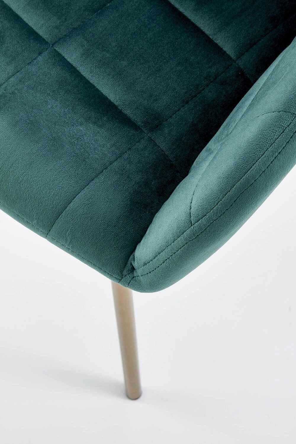 Elegancja w modnych odcieniach zieleni i złota Krzesło Minnesota to wyraz luksusu i elegancji, które wniosą do Twojego wnętrza wyjątkowy urok. Jego starannie przemyślany design i solidne wykonanie sprawiają, że stanowi ono znakomitą ozdobę zarówno w jadalni, kuchni, jak i jako eleganckie siedzisko przy toaletce. Siedzisko i oparcie są pokryte miękką, aksamitną tkaniną w pięknym odcieniu zieleni, co dodaje mu wyjątkowego uroku. Dodatkowo, ich pikowane wykończenie nadaje krzesłu subtelny, klasyczny charakter. Podstawa mebla to cztery solidne metalowe nogi w złotym kolorze, które nie tylko dodają elegancji, ale także zapewniają stabilność. Nogi są dodatkowo wyposażone w nakładki, które chronią podłogę przed zarysowaniami. Krzesło Minnesota to nie tylko estetyczna ozdoba, ale także praktyczne siedzisko. Solidne materiały użyte do jego produkcji gwarantują długotrwałe użytkowanie. To idealny wybór do eleganckich jadalni, kuchni czy jako urocze siedzisko przy toaletce. O tym warto pamiętać! Wyjątkowy design i solidne wykonanie Miękka, aksamitna tkanina o pikowanym wykończeniu Solidne, metalowe nogi w złotym kolorze