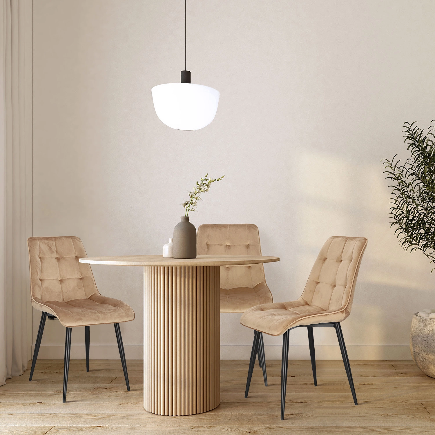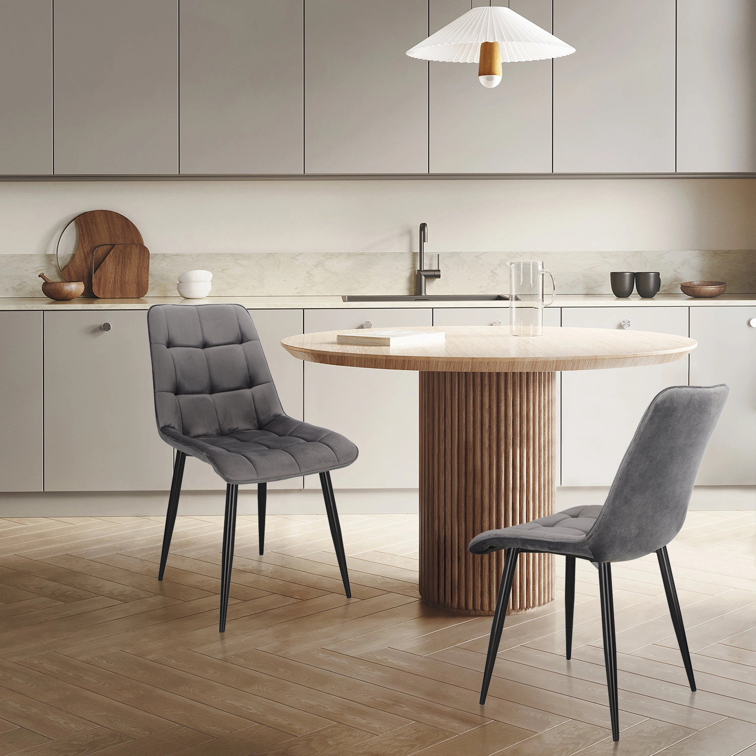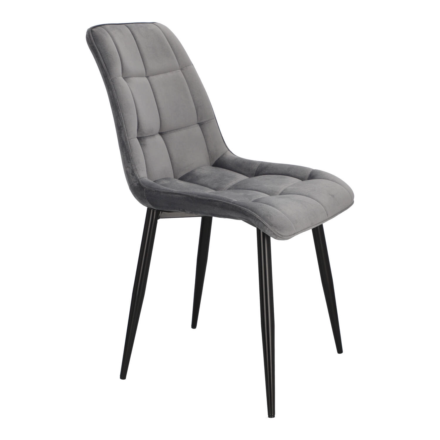 Każdy z nas posiada w swoim domu miejsce, które jest dla niego szczególnie ważne. Chęć zadbania o tę specjalną dla nas przestrzeń, sprawia, że decydujemy się na wybór oryginalnych mebli, które pozwolą na niepowtarzalną prezentację. Tapicerowane welwetowe krzesło PLAID w szarym pomoże Ci zaaranżować przestrzeń, tak byś czuł się w niej wyjątkowo i swobodnie. Tapicerowane pikowane siedzisko krzesła jest niezwykle wygodne, dzięki wyprofilowanemu oparciu. Tkanina o wykończeniu welwetowym sprawia, że siedząc na niej, możemy poczuć się jak na przysłowiowej chmurce, gdyż cieszy nasz zmysł dotyku swoją miękkością i delikatnością. Krzesło nie posiada podłokietników, dzięki czemu wsuniemy je pod każdy stół, oszczędzając miejsce. Dlatego PLAID będzie doskonałym wyborem jako krzesło konferencyjne lub krzesło do jadalni z małym stołem. Metalowe nogi pomalowane proszkowo na czarno są odporne na uszkodzenia. Półmatowe wykończenie nóg, prezentuje się bardzo elegancko, dodając meblowi nowoczesnego wyglądu. Aby zabezpieczyć podłoże przed rysowaniem, nóżki krzesła zostały zakończone stopkami z tworzywa.
